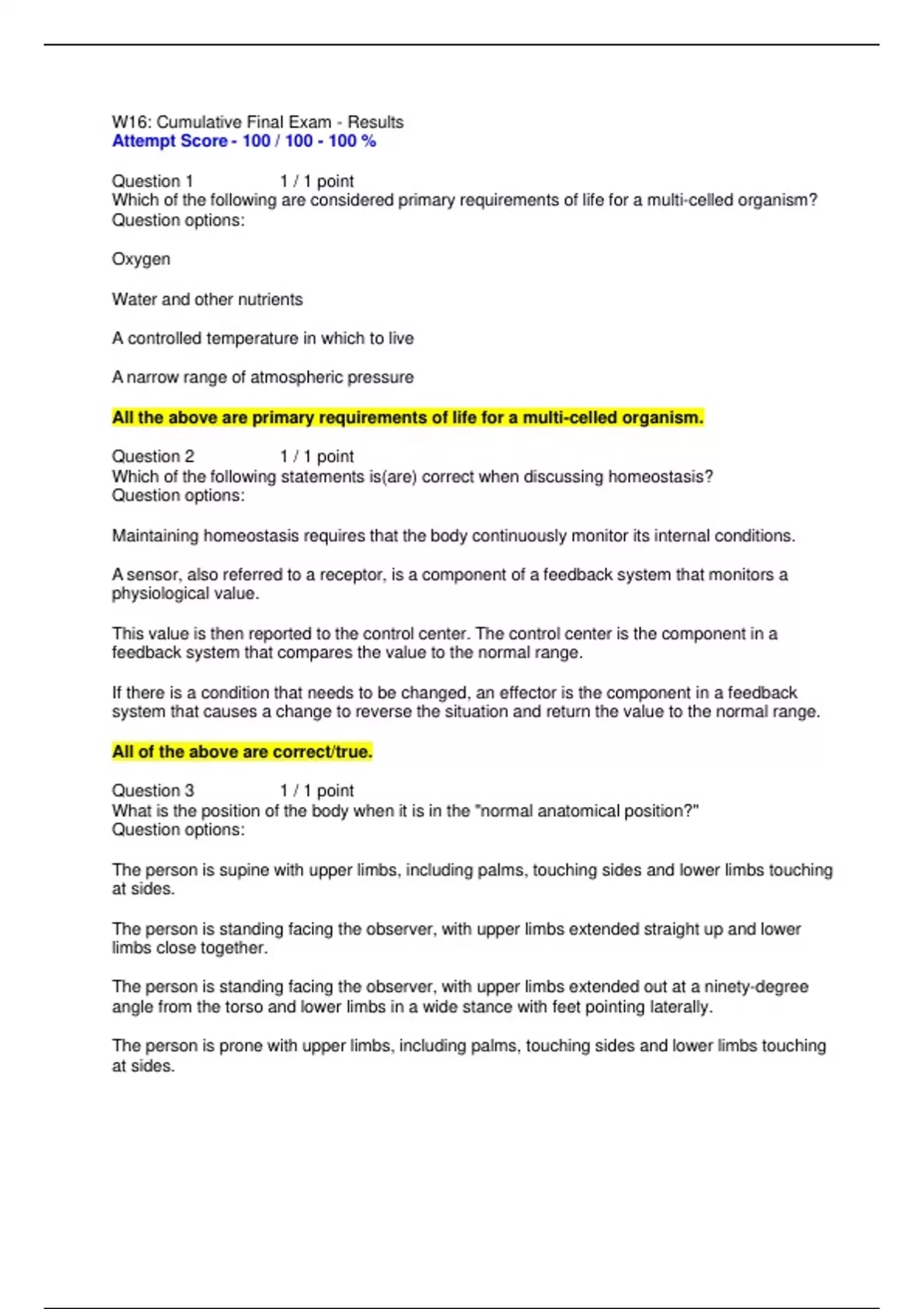 BIOL250 Week 16 Cumulative Final Exam (Spring, Summer ,Winter)