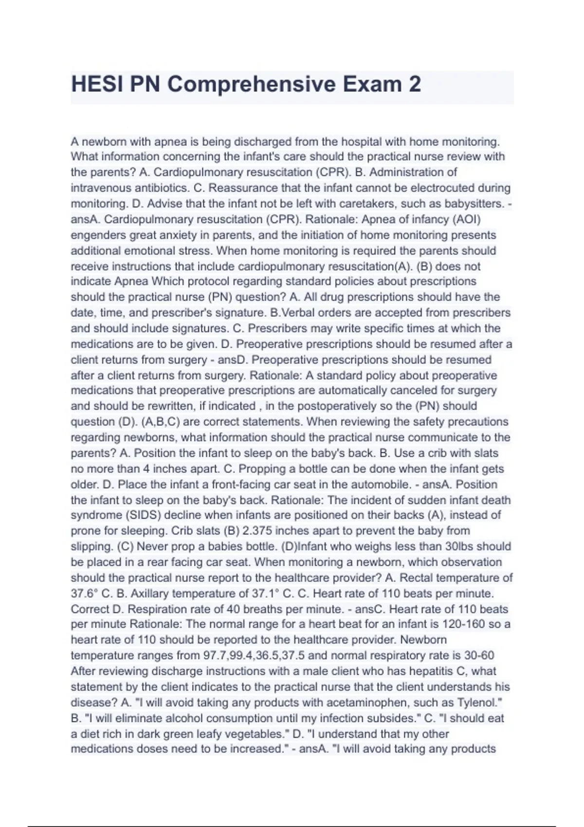 HESI PN Comprehensive Exam ( GRADED A + 100 % verified)