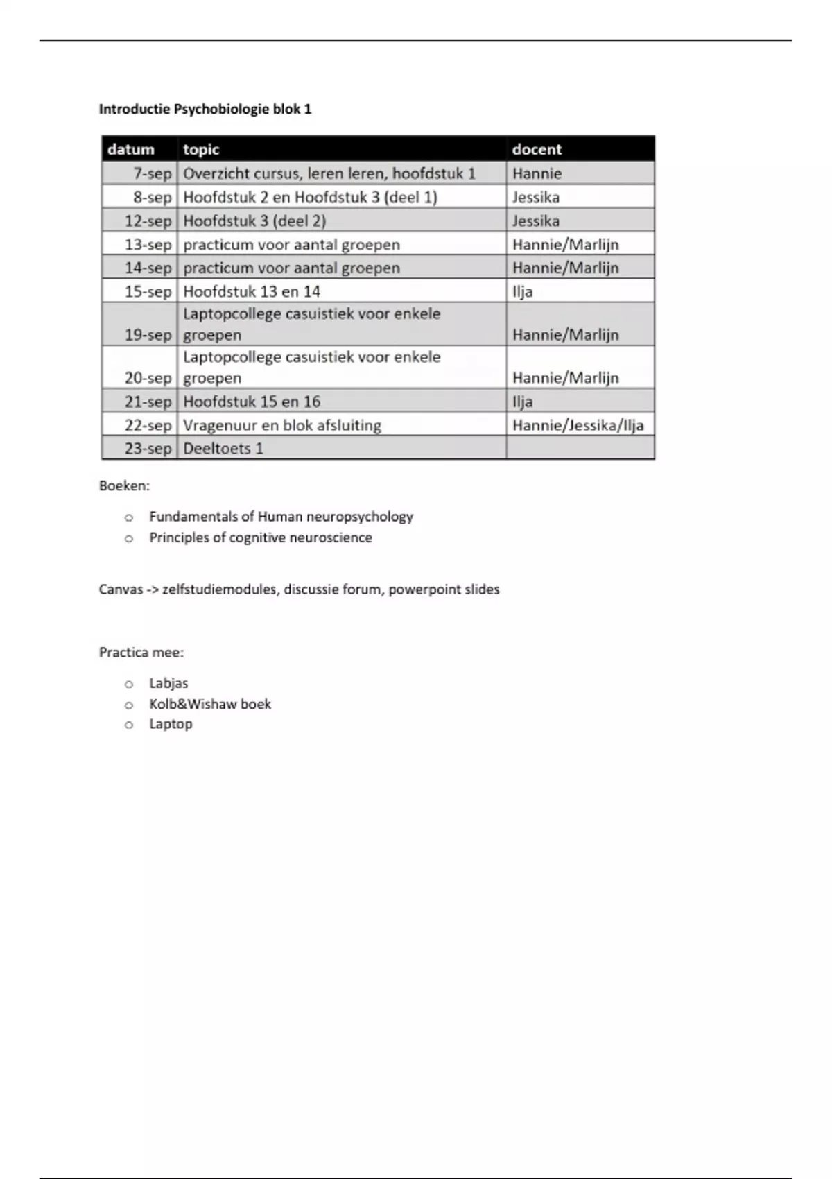 Canvas -> zelfstudiemodules, discussie forum, powerpoint slides