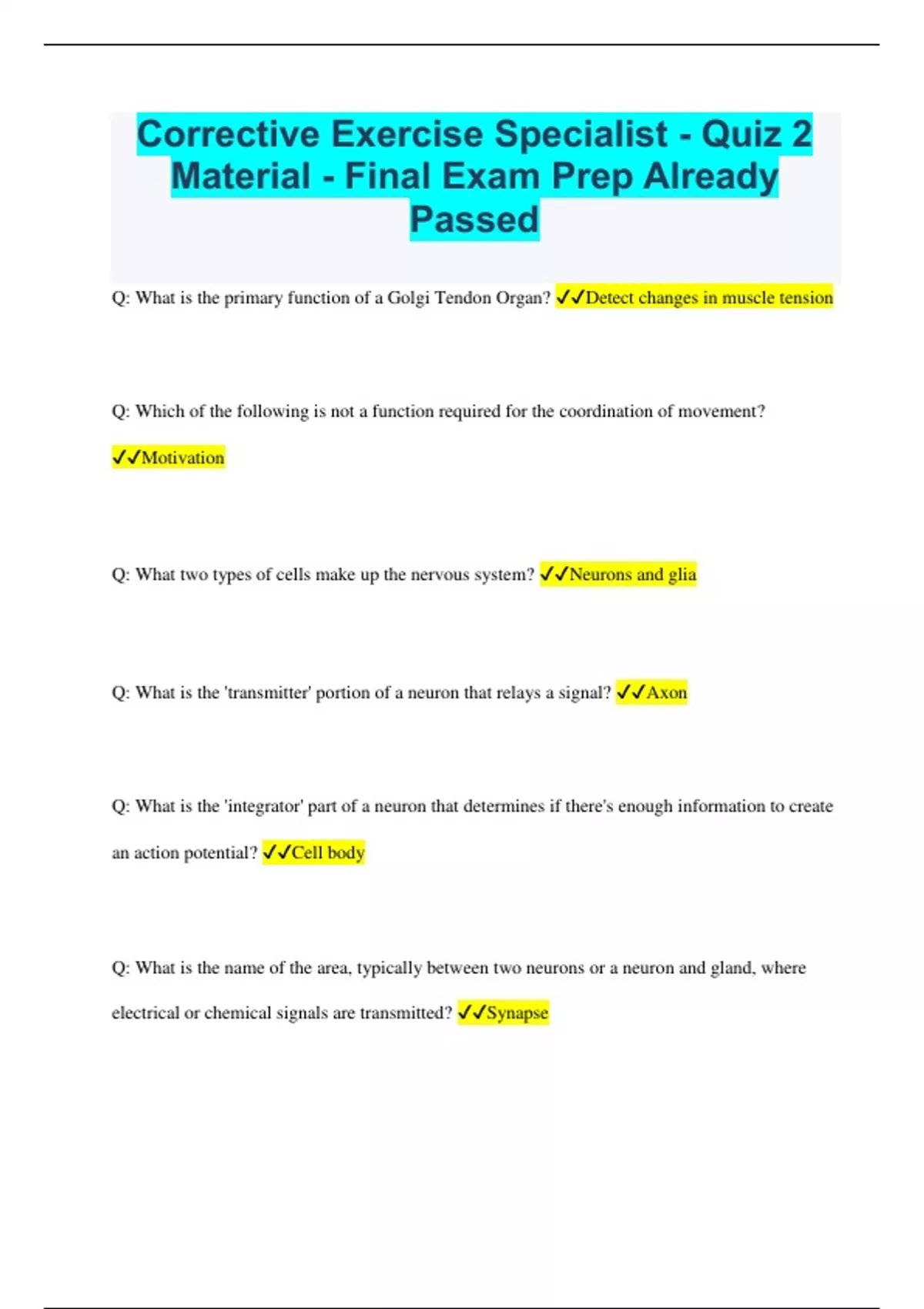 Corrective Exercise Specialist - Quiz 2 Material - Final Exam Prep Already Passed