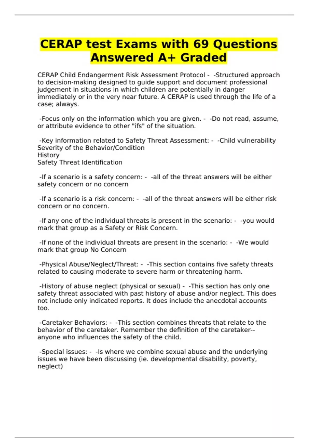 CERAP test Exams with 69 Questions Answered A+ Graded