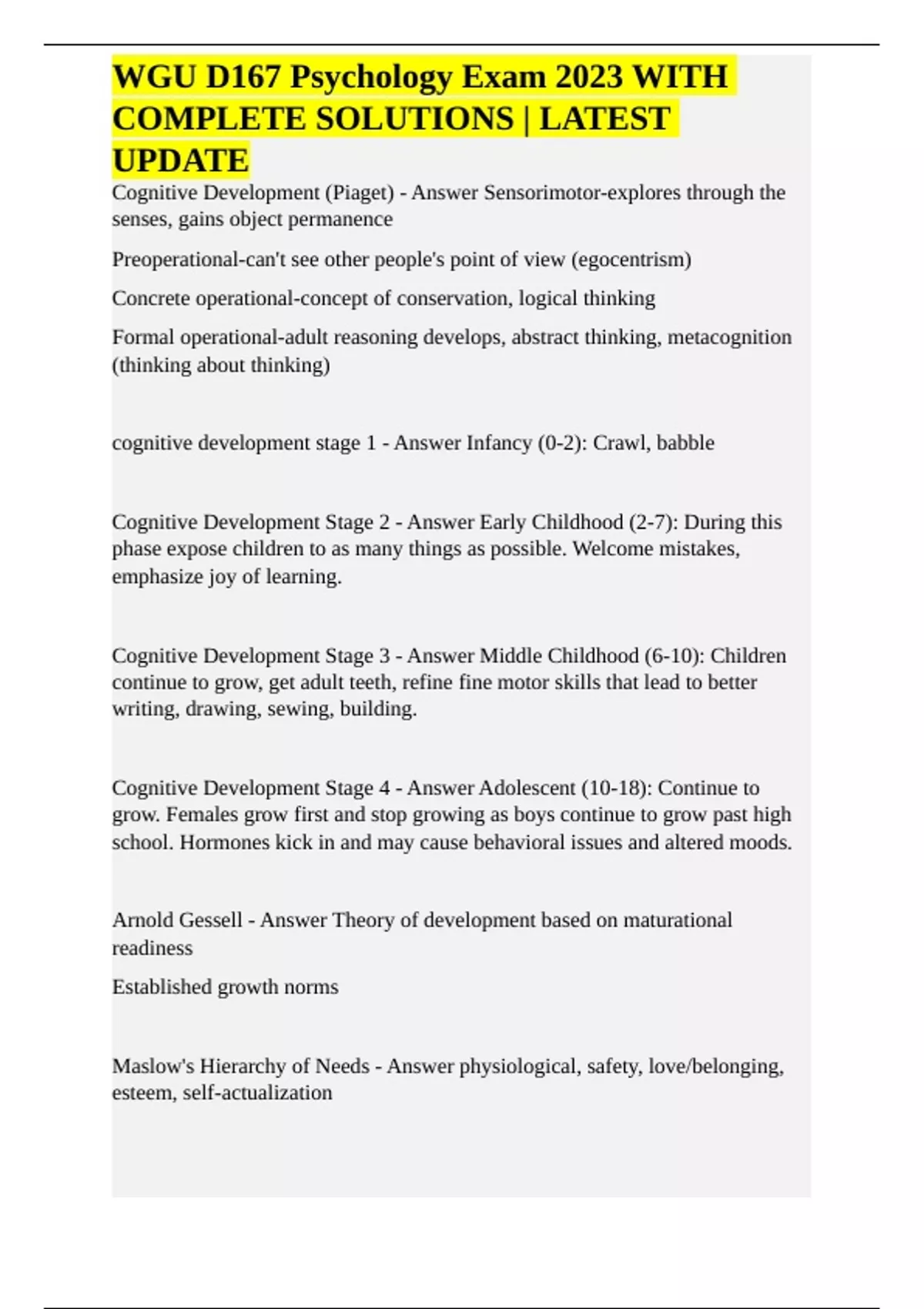 WGU D167 Psychology Exam 2023 WITHCOMPLETE SOLUTIONS LATESTUPDATEWGU D167 Psychology Exam 2023 WITHCOMPLETE SOLUTIONS LATESTUPDATE