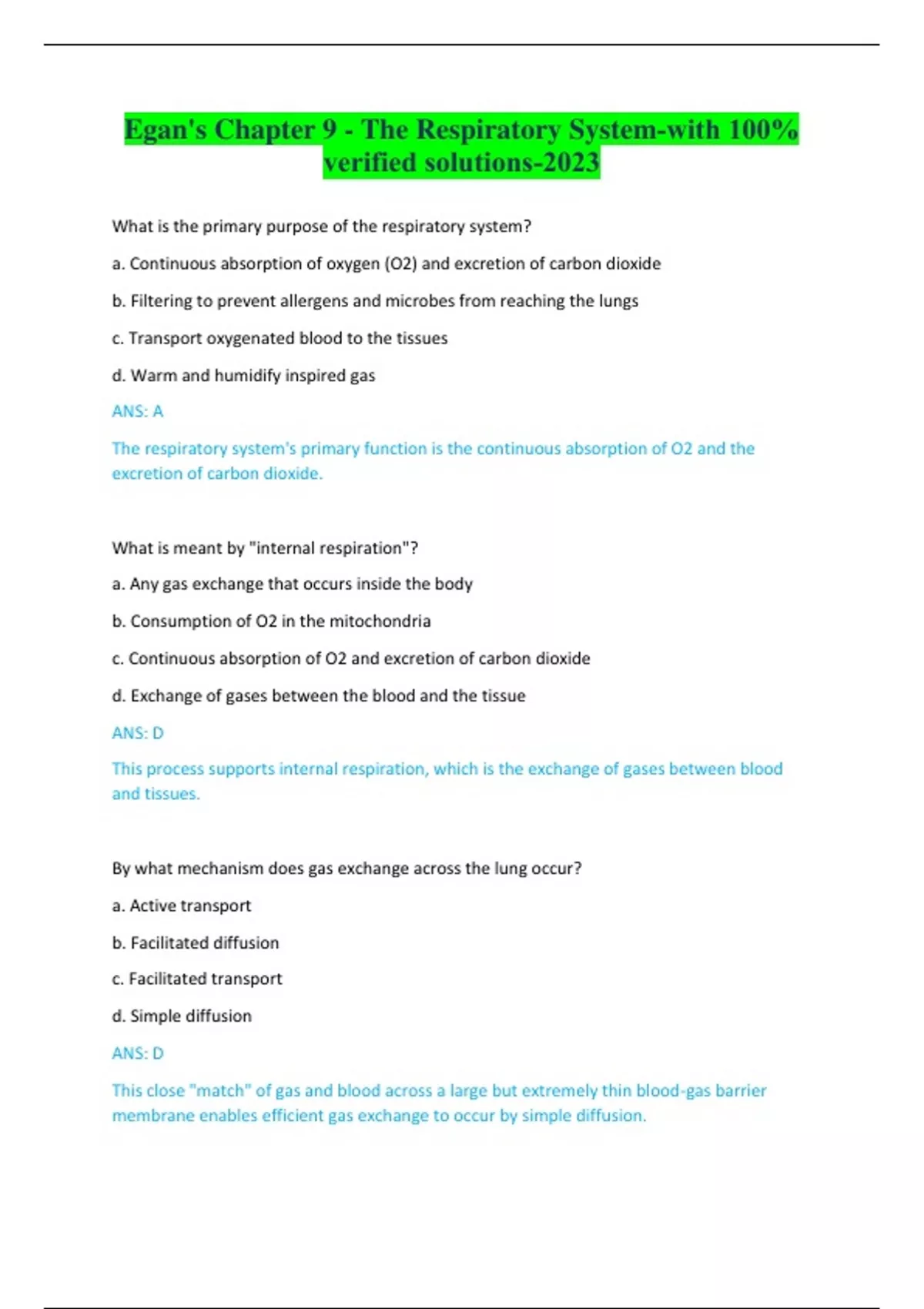 Egan's Chapter 9 - The Respiratory System-with 100% verified solutions-2023