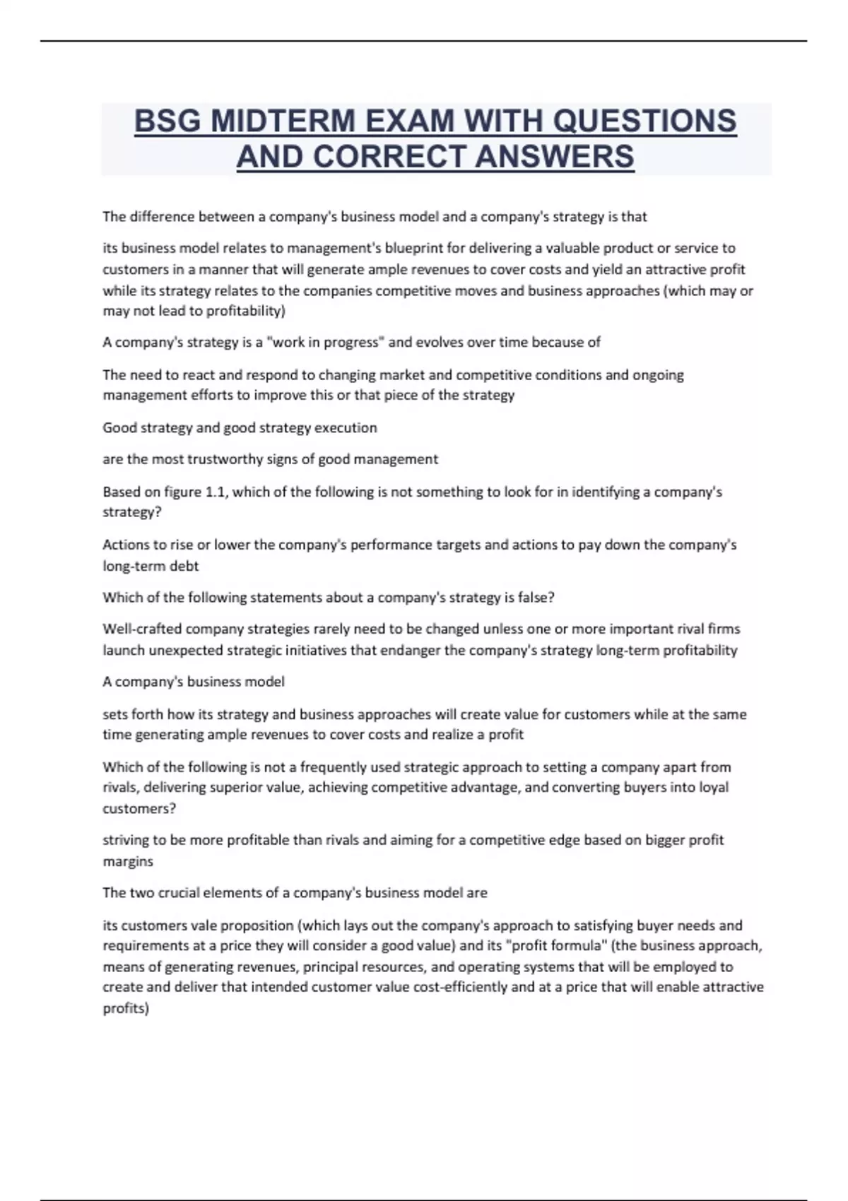 BSG MIDTERM EXAM WITH QUESTIONS AND CORRECT ANSWERS