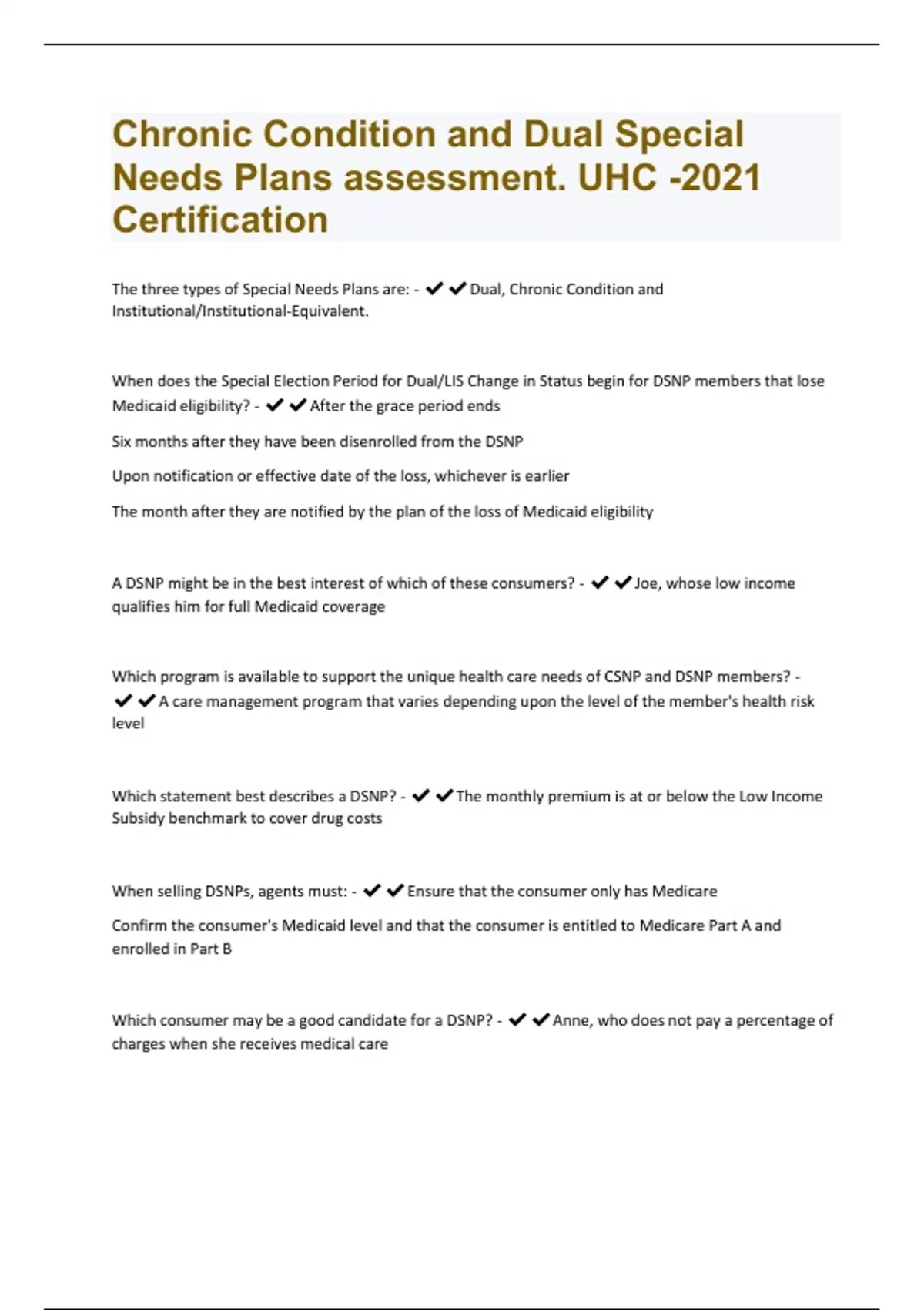 Chronic Condition and Dual Special Needs Plans assessment. UHC Certification Exam Solved 100% Correct!!