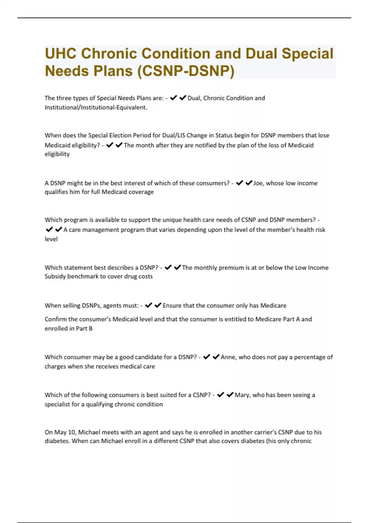 UHC Chronic Condition and Dual Special Needs Plans (CSNP-DSNP) Questions and Answers(A+ Solution guide)