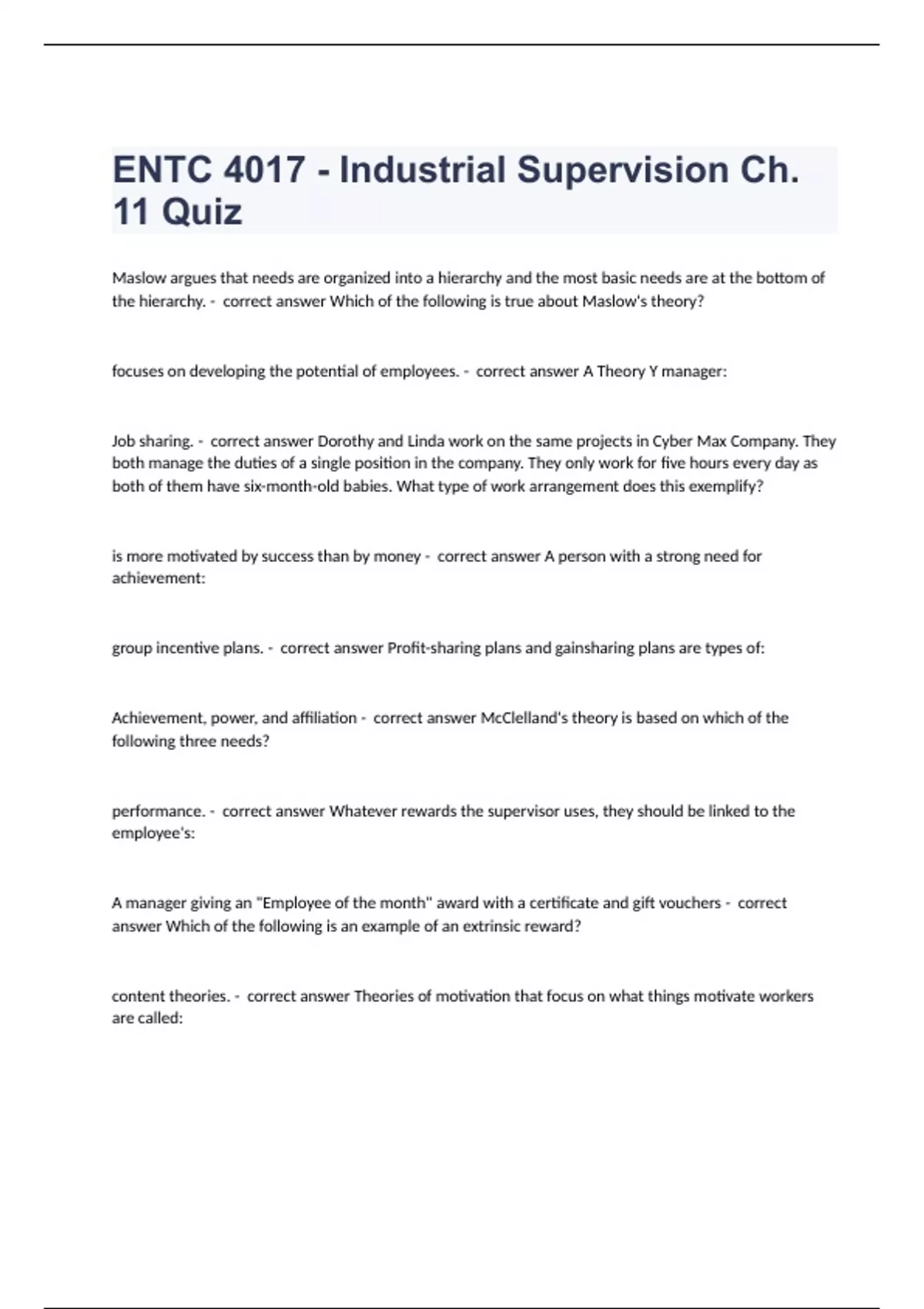 ENTC 4017 - Industrial Supervision Ch. 11 Quiz well answered 2023