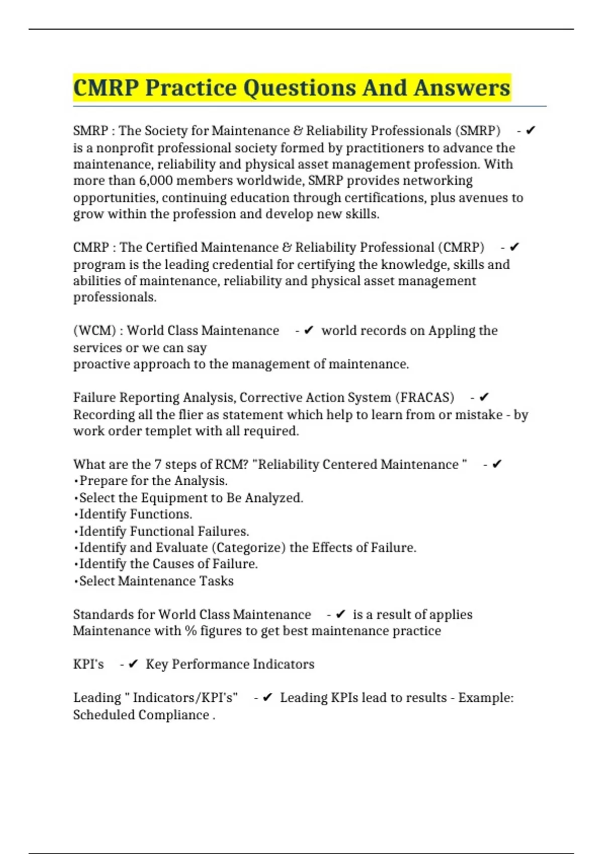 - CERTIFIED MAINTENANCE & RELIABILITY PROFESSIONAL