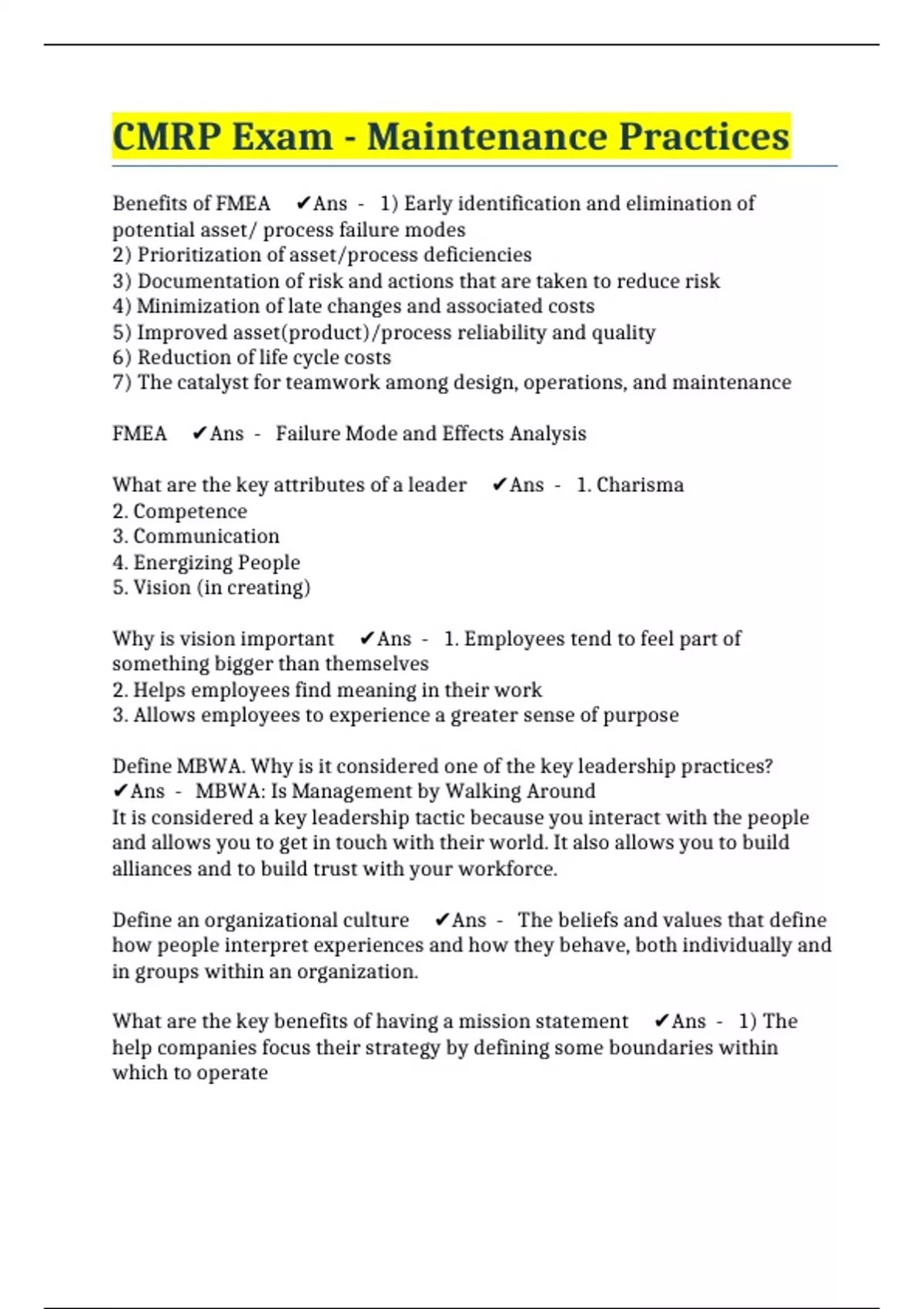 - CERTIFIED MAINTENANCE & RELIABILITY PROFESSIONAL