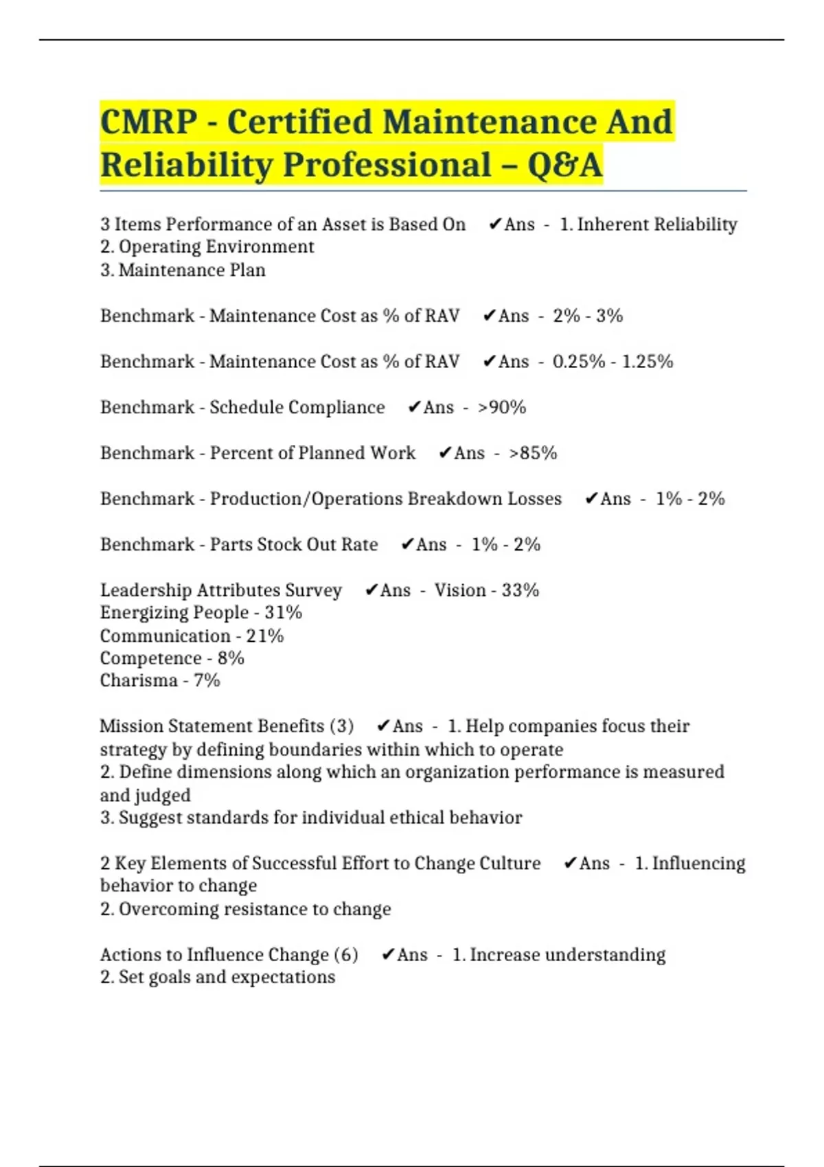 CMRP - Certified Maintenance And Reliability Professional – Q&A