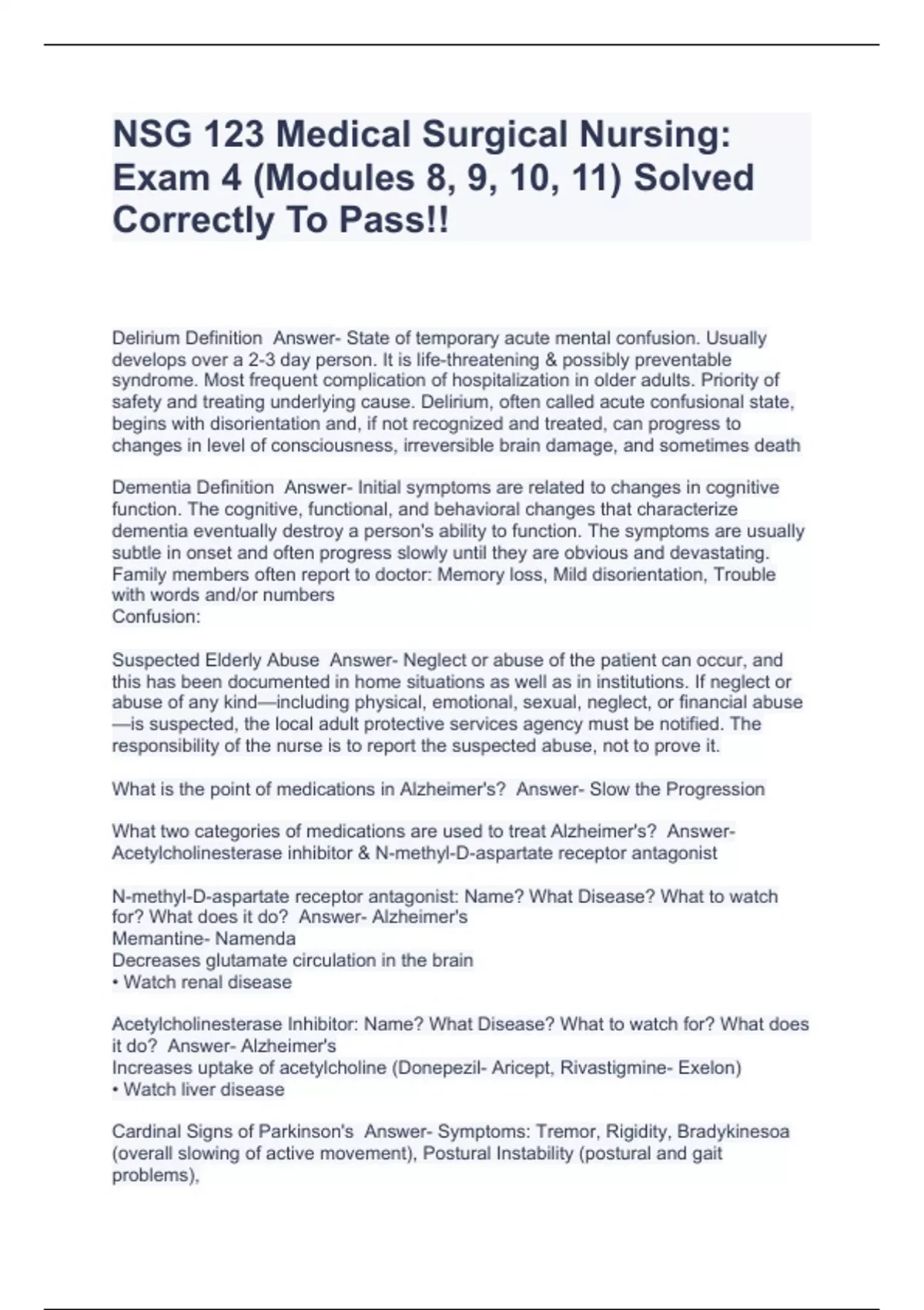 NSG 123 Medical Surgical Nursing: Exam 4 (Modules 8, 9, 10, 11) Solved Correctly To Pass!!