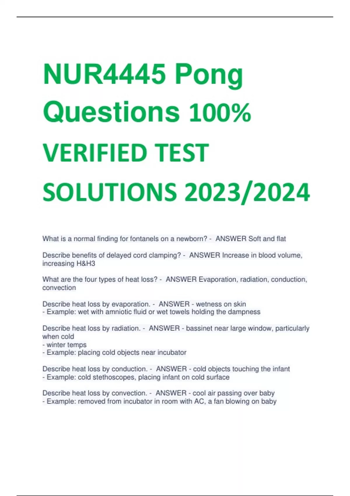 NUR4445 Pong Questions 100% VERIFIED TEST SOLUTIONS 2023/2024