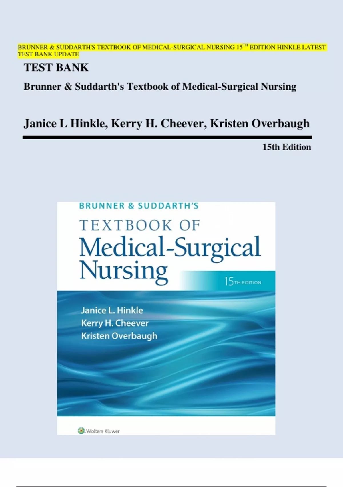 , Brunner & Suddarth's Textbook of Medical-Surgical Nursing, 15e Hinkle test bank