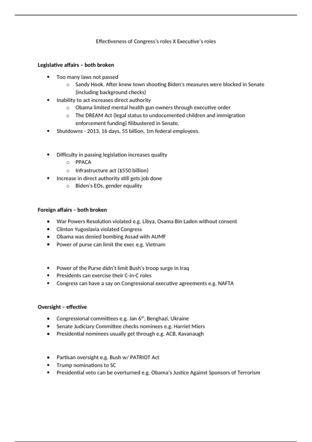 Evaluate the view that both Executive and Congress perform their roles effectively essay plan Edexcel A Level