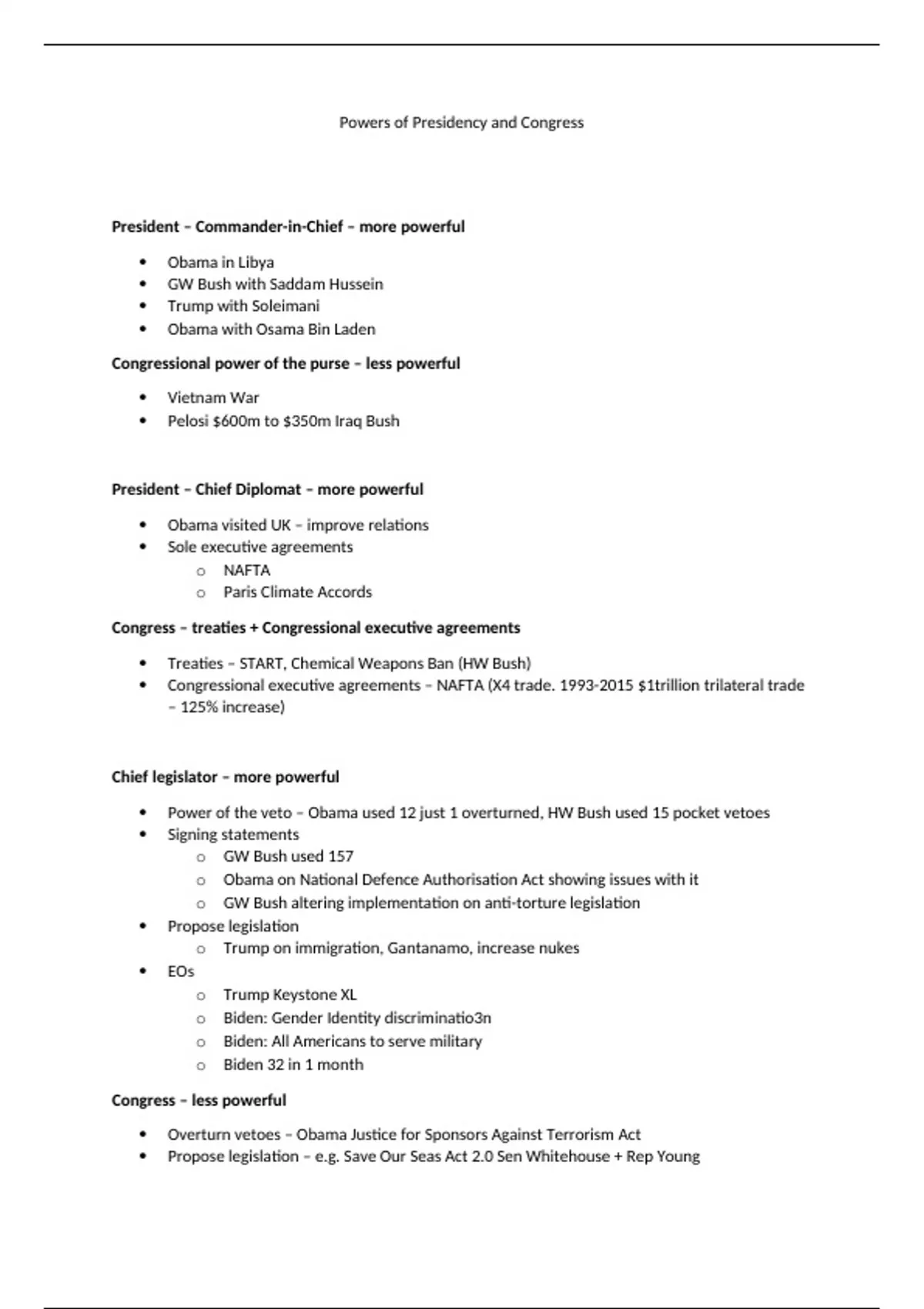 An A* Edexcel A Level Politics essay plan on whether the President is more powerful than Congress. Contains 3 arguments with 3 corresponding counter-arguments