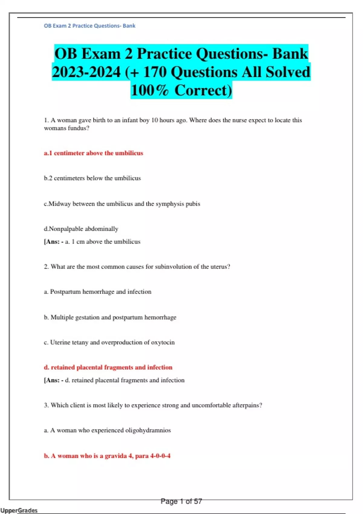 OB Exam 2 Practice Questions- Bank (+ 170 Questions All Solved 100% Correct),OB Exam 2 Practice Questions- Bank (+ 170 Questions All Solved 100% Correct),OB Exam 2 Practice Questions- Bank (+ 170 Questions All Solved 100% Correct)