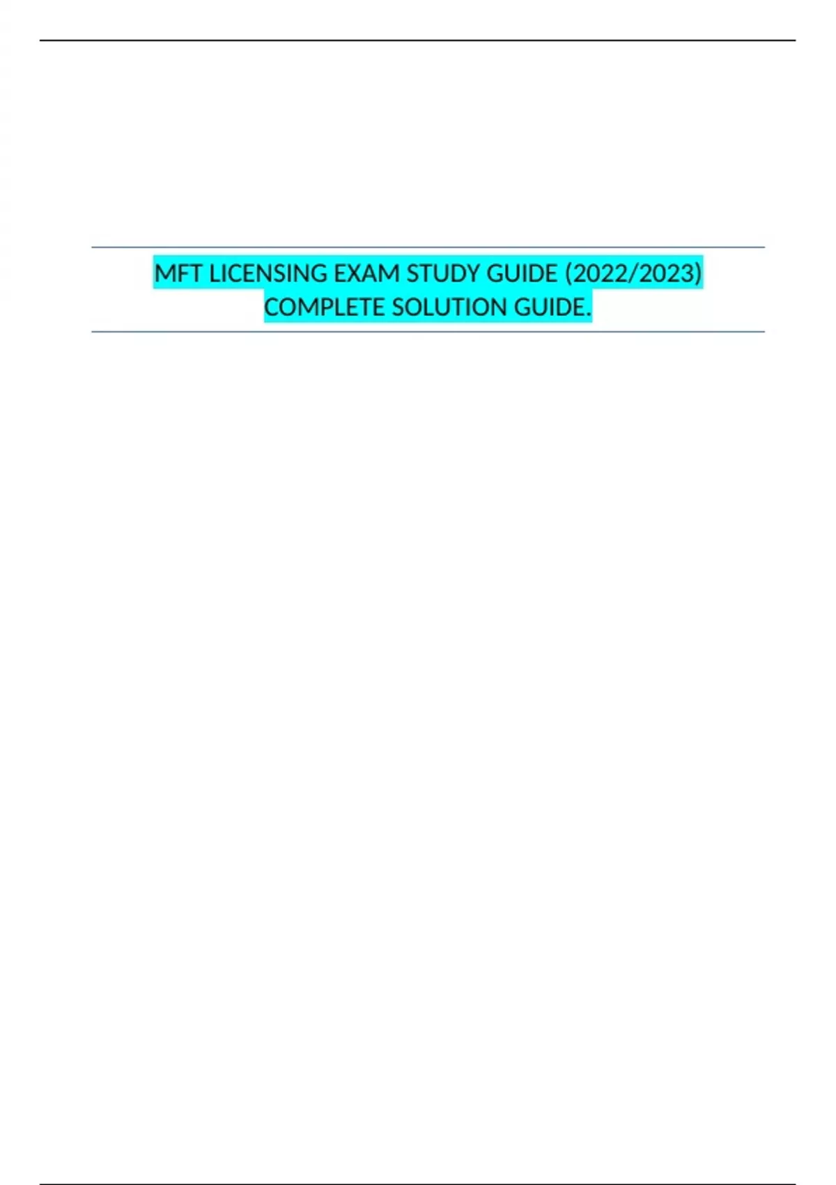 MFT LICENSING EXAM STUDY GUIDE (2022/2023) COMPLETE SOLUTION GUIDE.