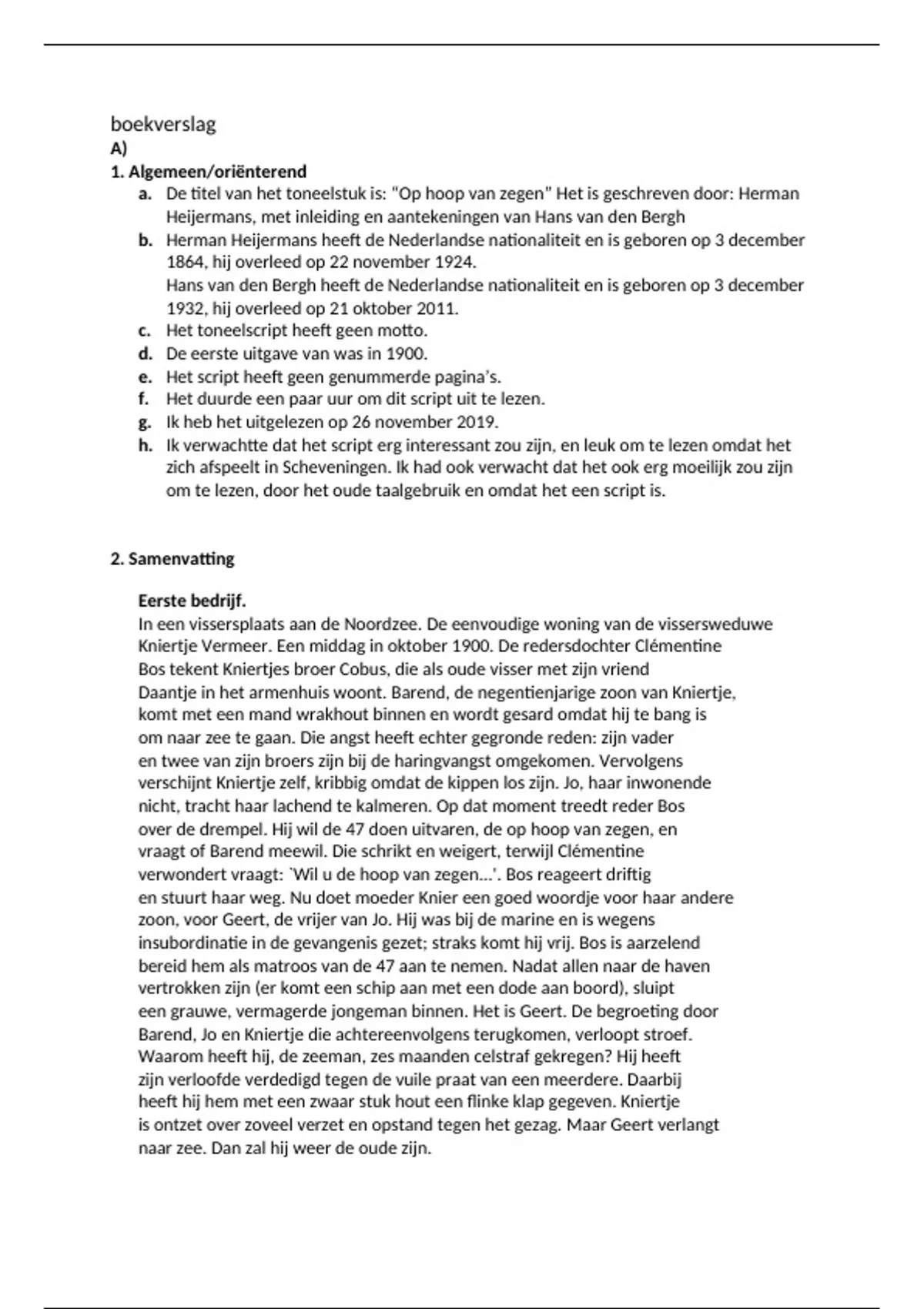 a. De titel van het toneelstuk is: “Op hoop van zegen” Het is geschreven door: Herman