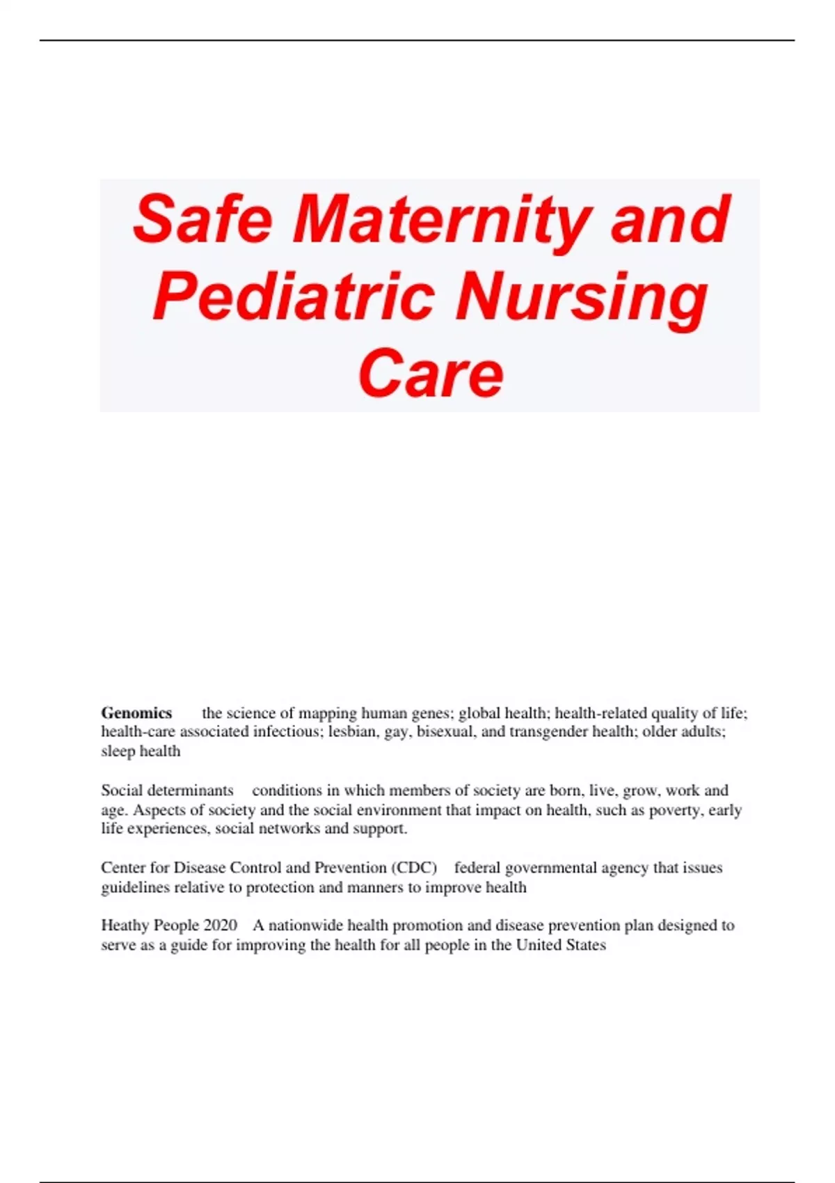 Safe Maternity and Pediatric Nursing Care