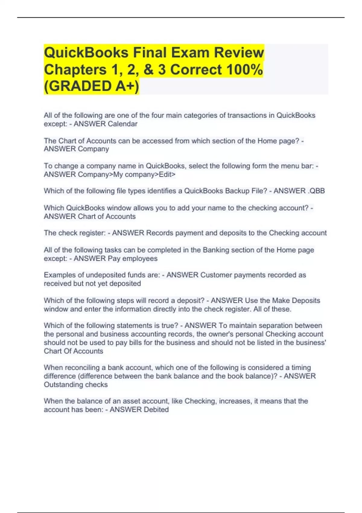 quickbooks final exam review chapters stuvia
