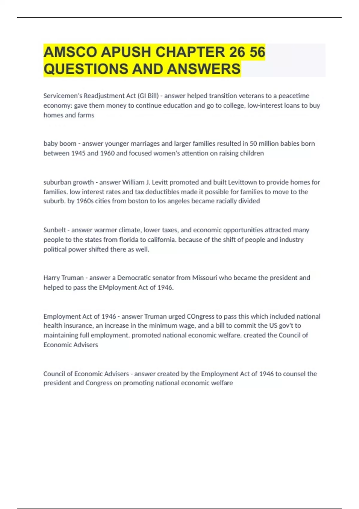 AMSCO APUSH CHAPTER 26 |56 QUESTIONS AND ANSWERS|GUARANTEED SUCCESS