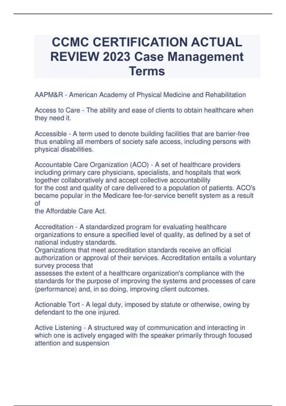 CCMC CERTIFICATION ACTUAL REVIEW 2023 Case Management Terms