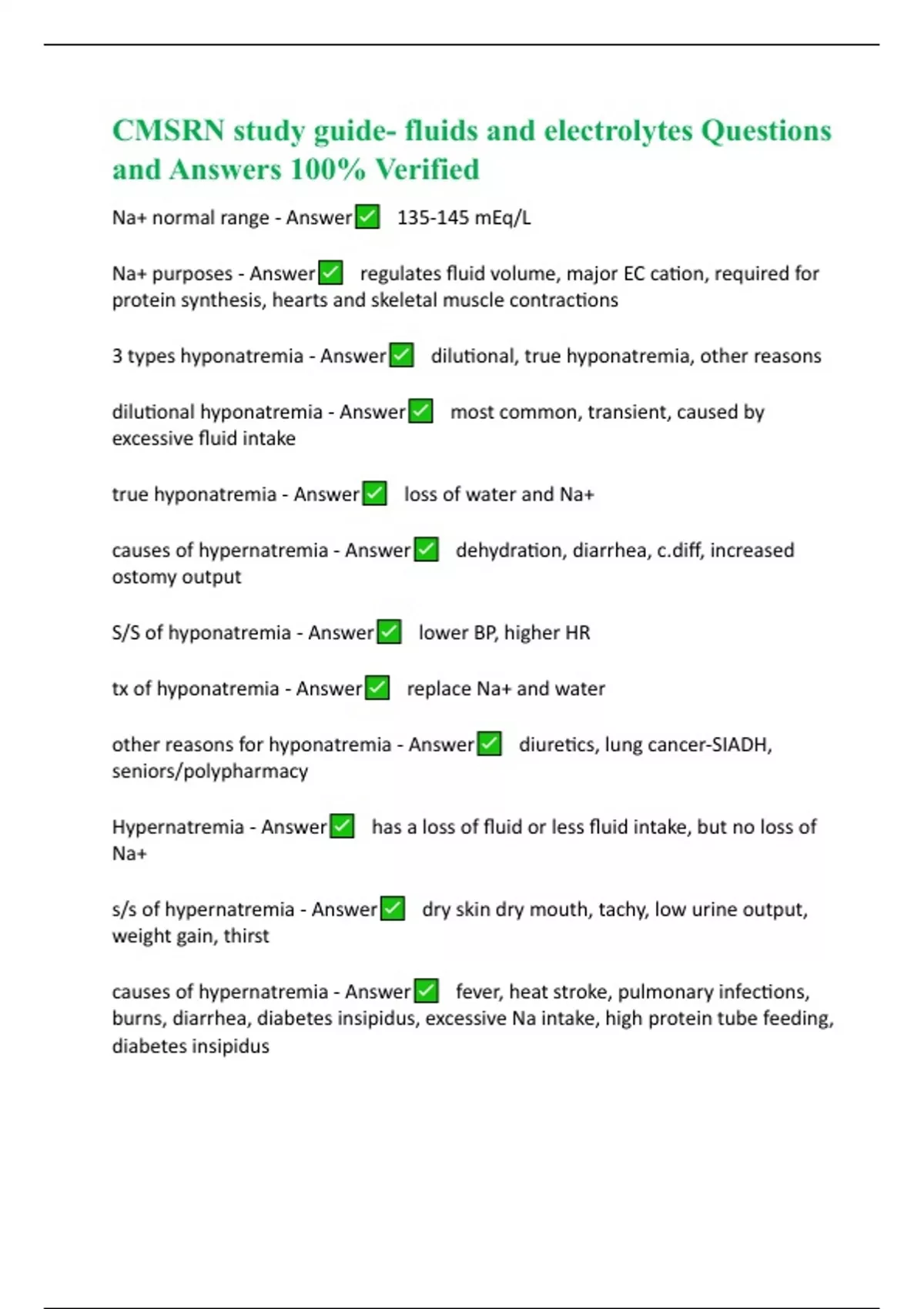 CMSRN study guide- fluids and electrolytes Questions and Answers 100% Verified