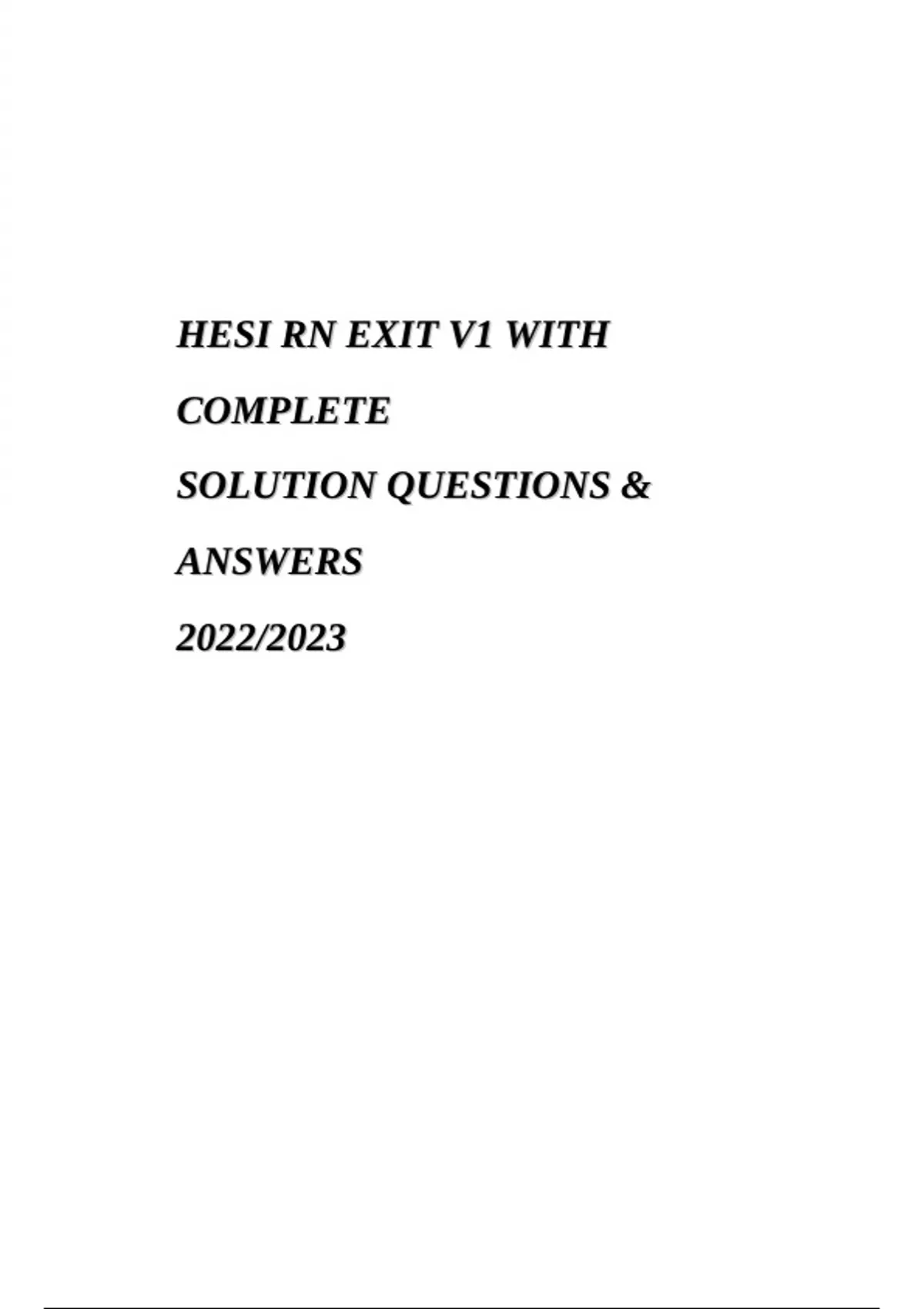 HESI RN EXIT V1 WITH COMPLETE SOLUTION QUESTIONS & ANSWERS 2022/2023.