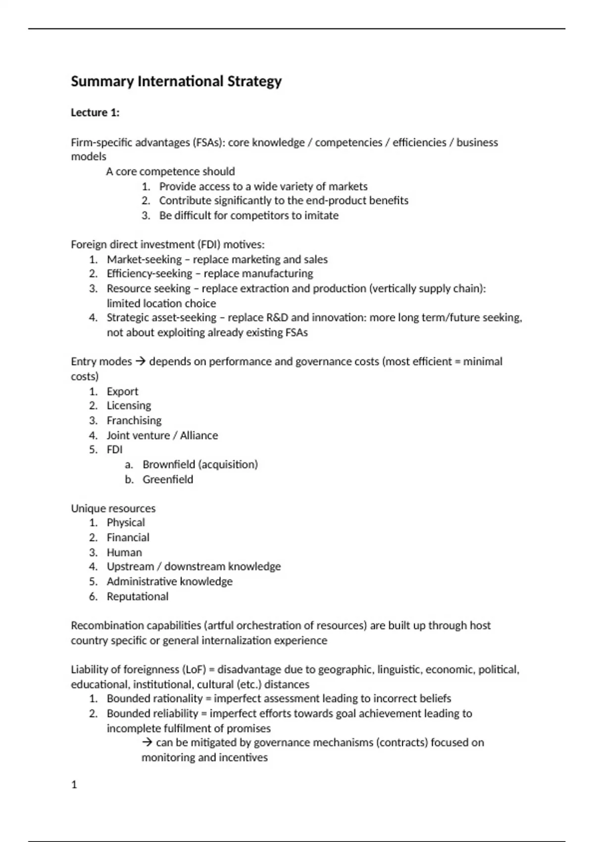Summary International Strategy