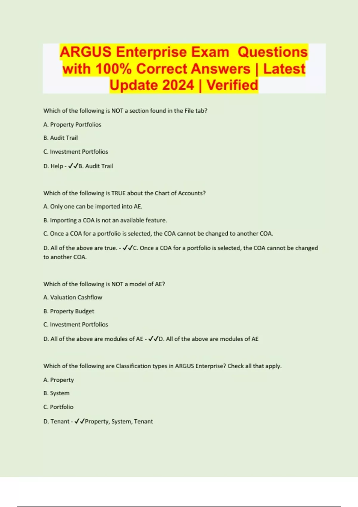 ARGUS Enterprise Exam Questions with 100% Correct Answers | Latest Update 2024 | Verified