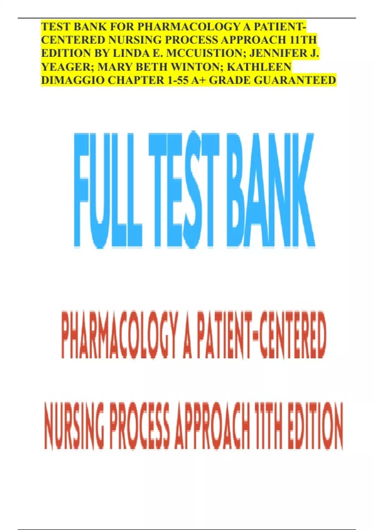 PHARMACOLOGY A PATIENT- CENTERED NURSING PROCESS APPROACH 11TH EDITION BY LINDA E. MCCUISTION; JENNIFER J. YEAGER; MARY BETH WINTON; KATHLEEN DIMAGGIO CHAPTER 1-55 A+ GRADE GUARANTEED