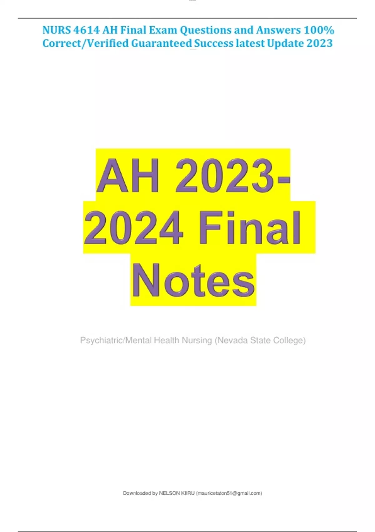 nurs 4614 ah final exam questions and answers 100