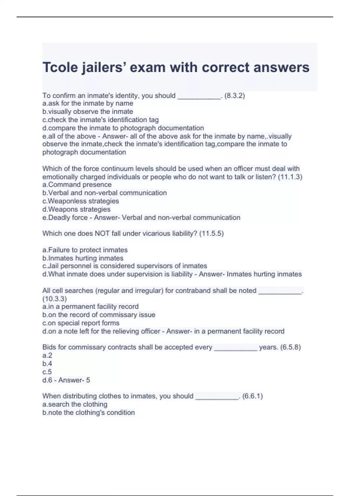 Tcole jailers’ exam with correct answers