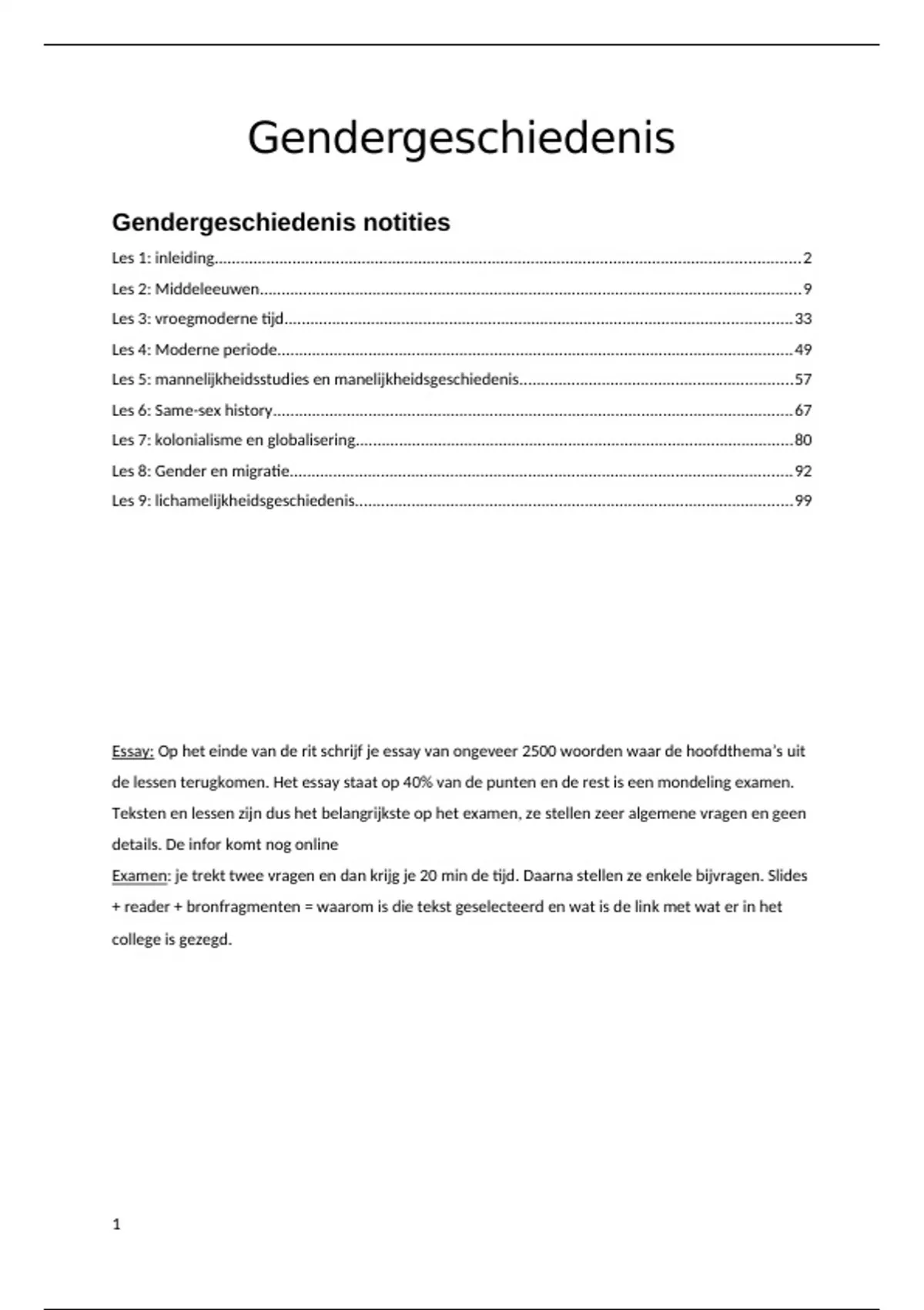de lessen terugkomen. Het essay staat op 40% van de punten en de rest is een mondeling examen.