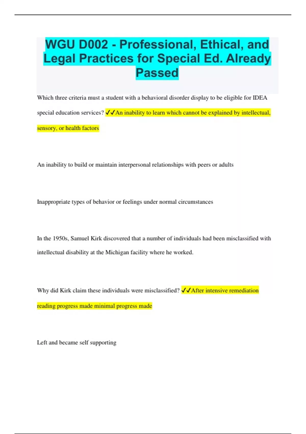 WGU D002 - Professional, Ethical, and Legal Practices for Special Ed. Already Passed