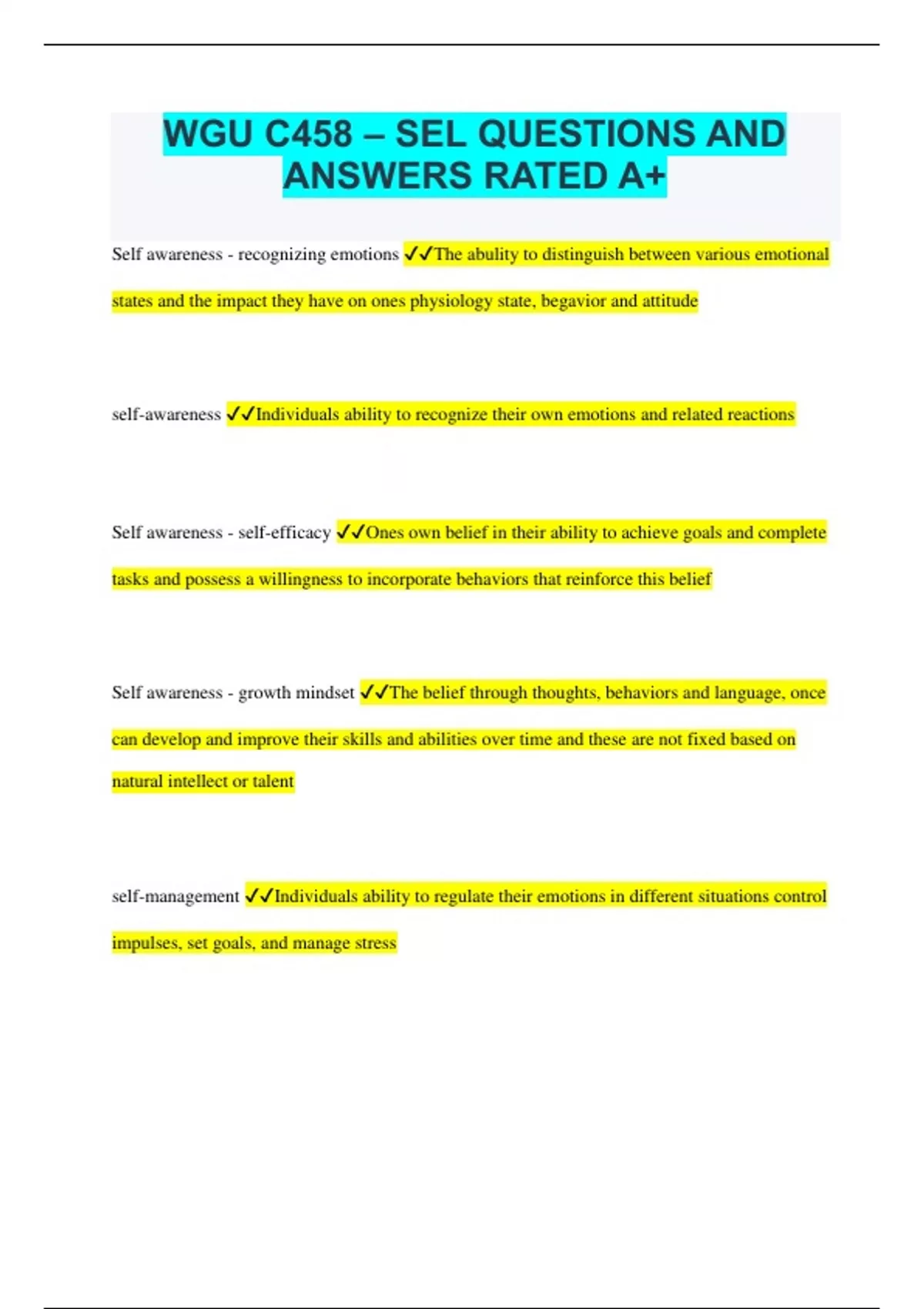 wgu c458 sel questions and answers rated a