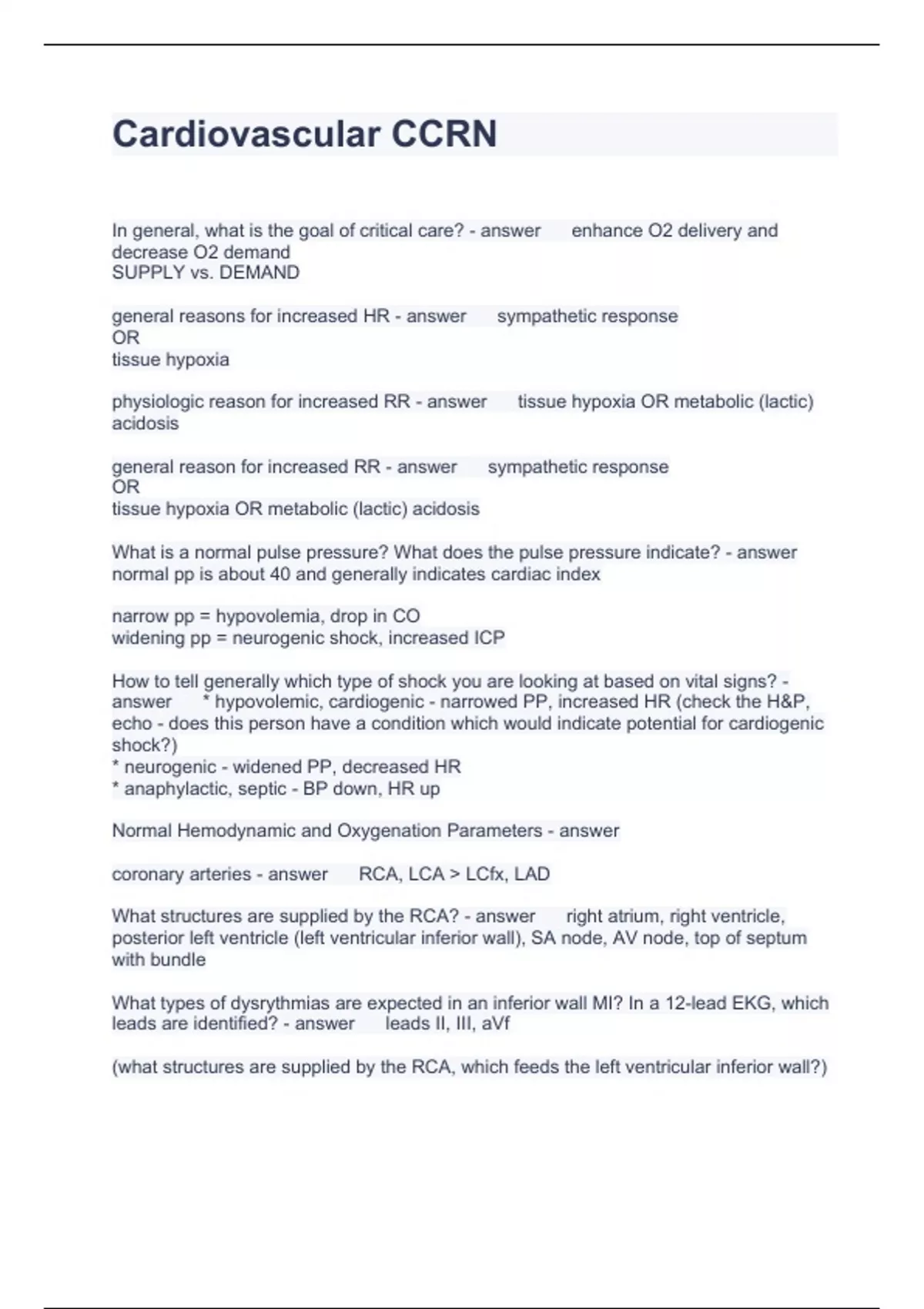 Exam of 14 pages for the course CCRN at CCRN (Cardiovascular CCRN)