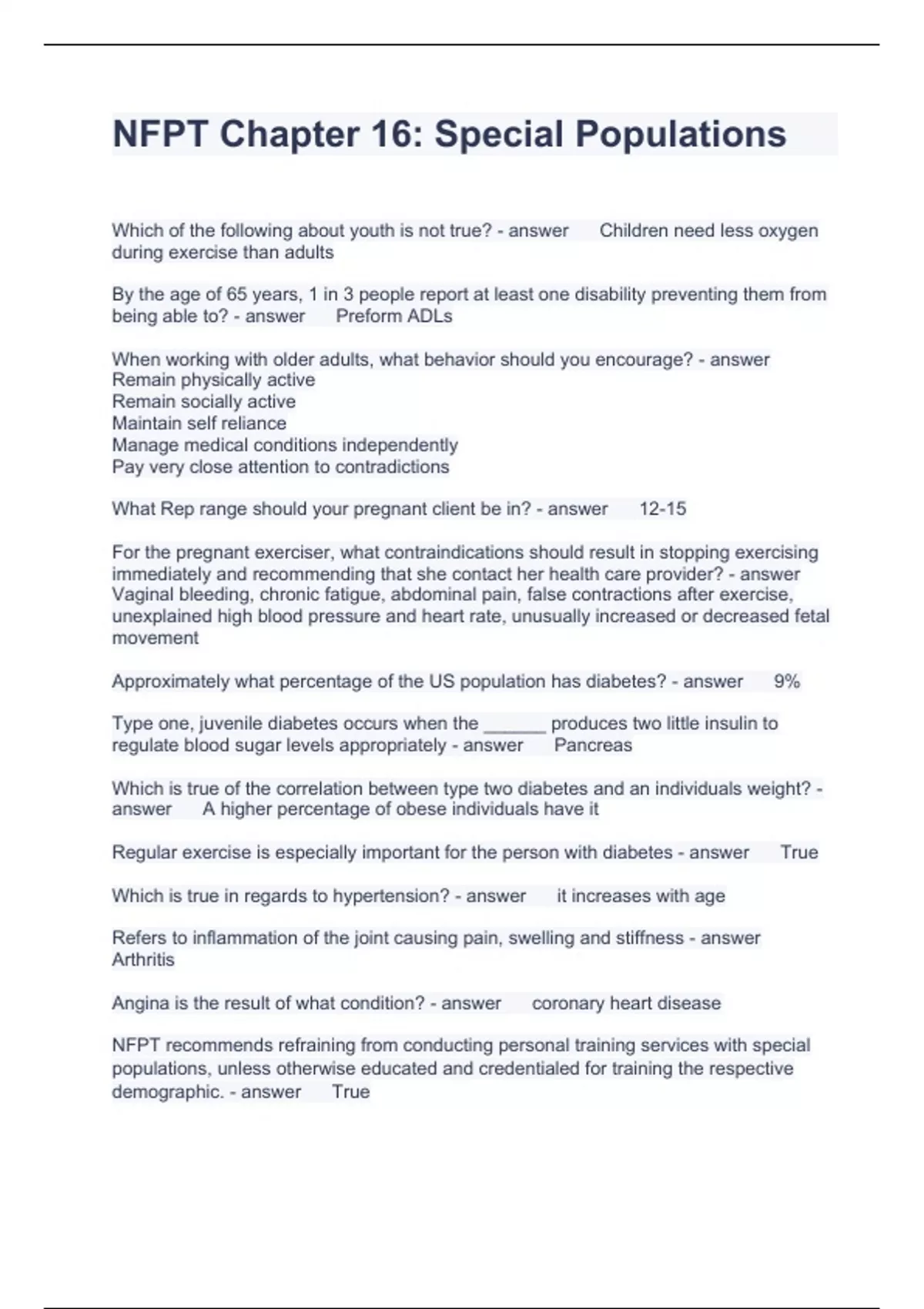 Exam of 1 pages for the course Nfpt at Nfpt (NFPT Chapter 16)