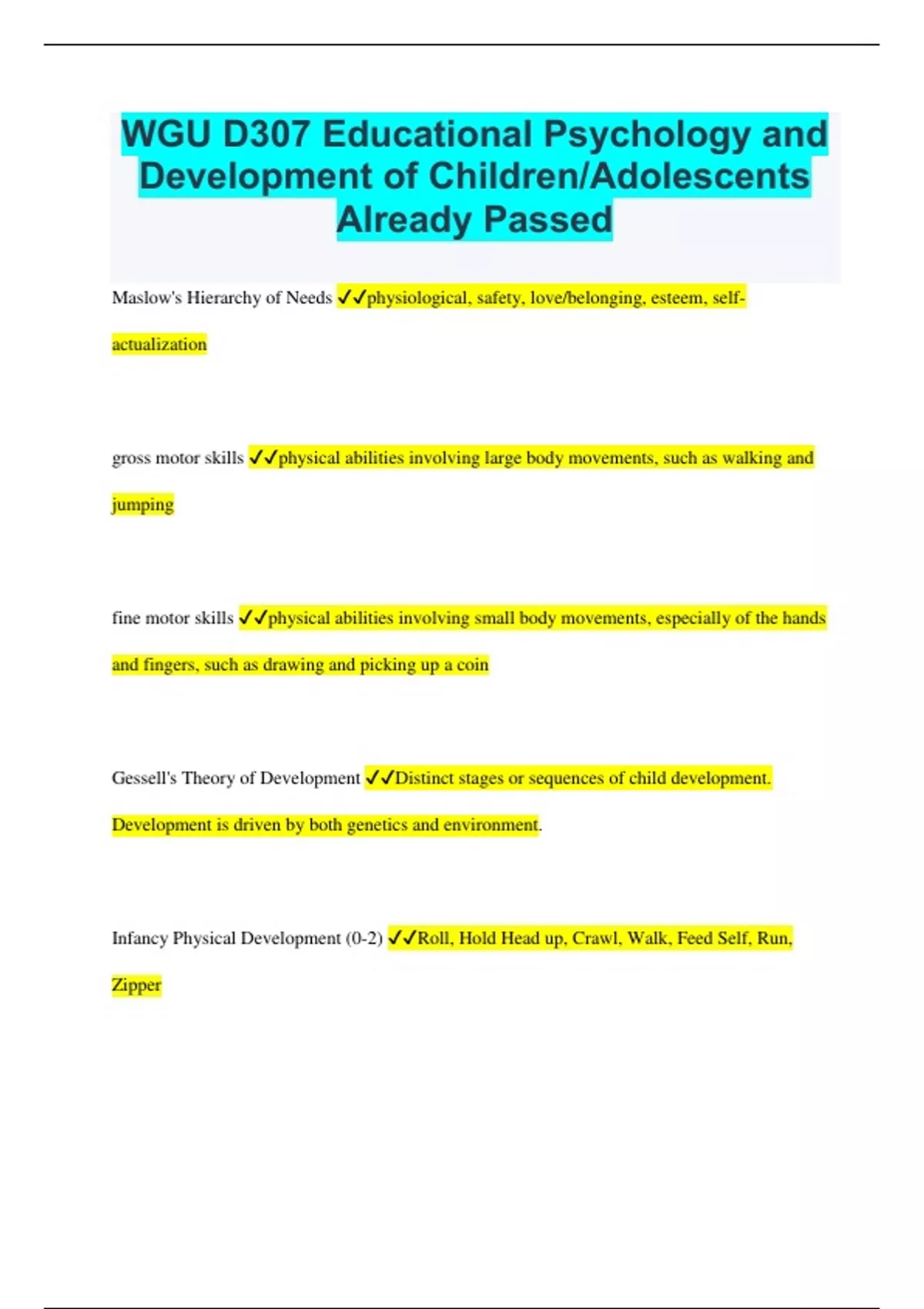 WGU D307 Educational Psychology and Development of Children/Adolescents Already Passed