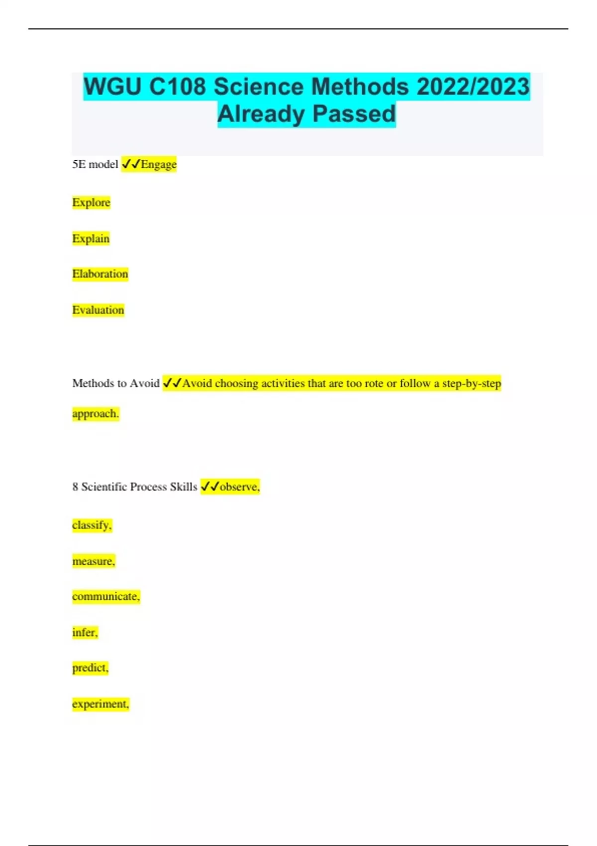 wgu c108 science methods already passed