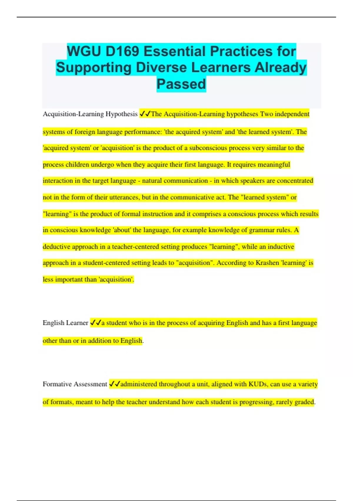 WGU D169 Essential Practices for Supporting Diverse Learners Already Passed