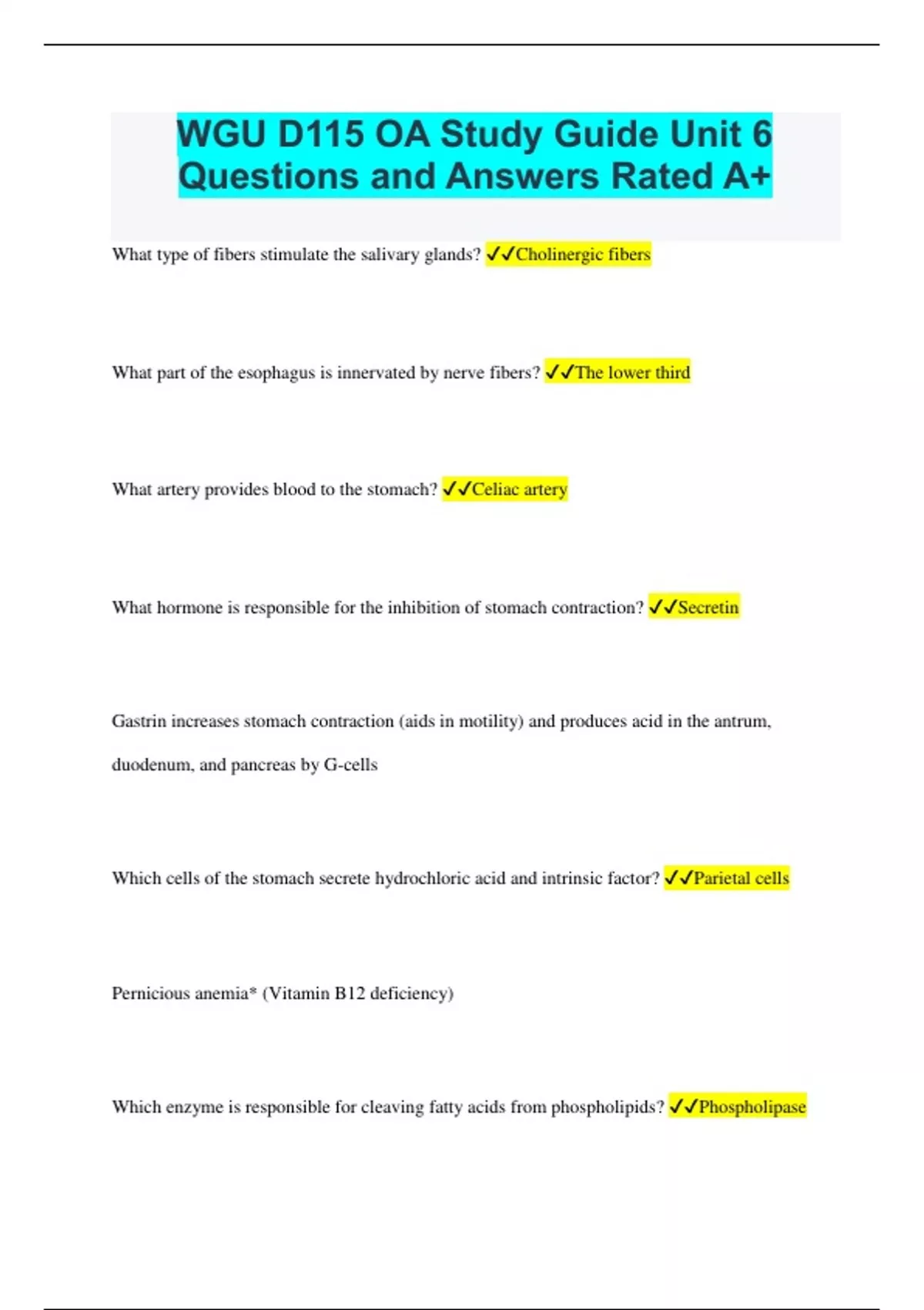 WGU D115 OA Study Guide Unit 6 Questions and Answers Rated A+