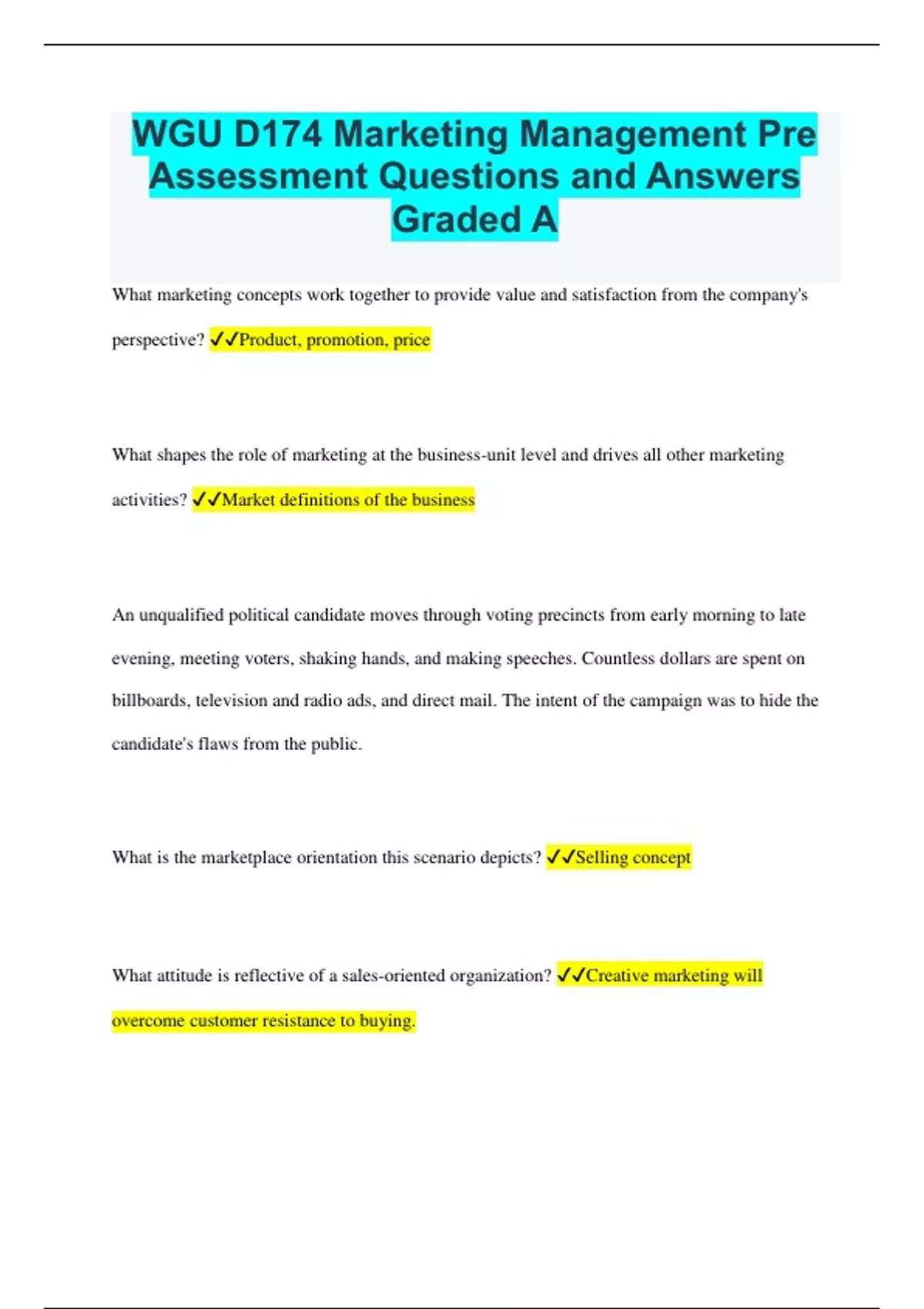 What is the marketplace orientation this scenario depicts? ✔✔Selling concept