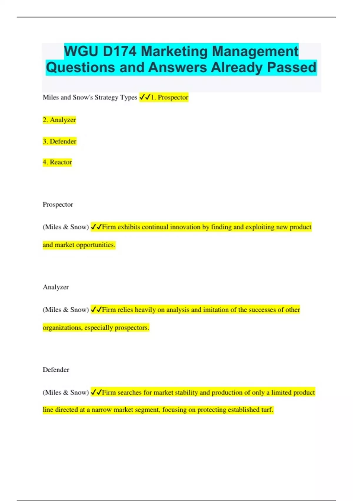WGU D174 Marketing Management Pre Assessment Questions and Answers Graded A