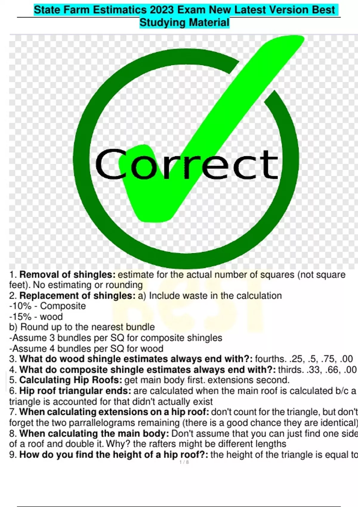 State Farm Estimatics 2023 Exam New Latest Version Best Studying Material
