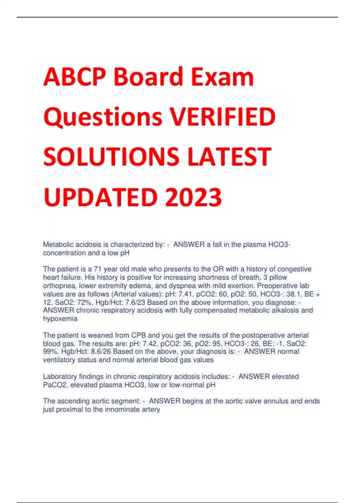 ABCP Board Exam Questions VERIFIED SOLUTIONS LATEST UPDATED 2023