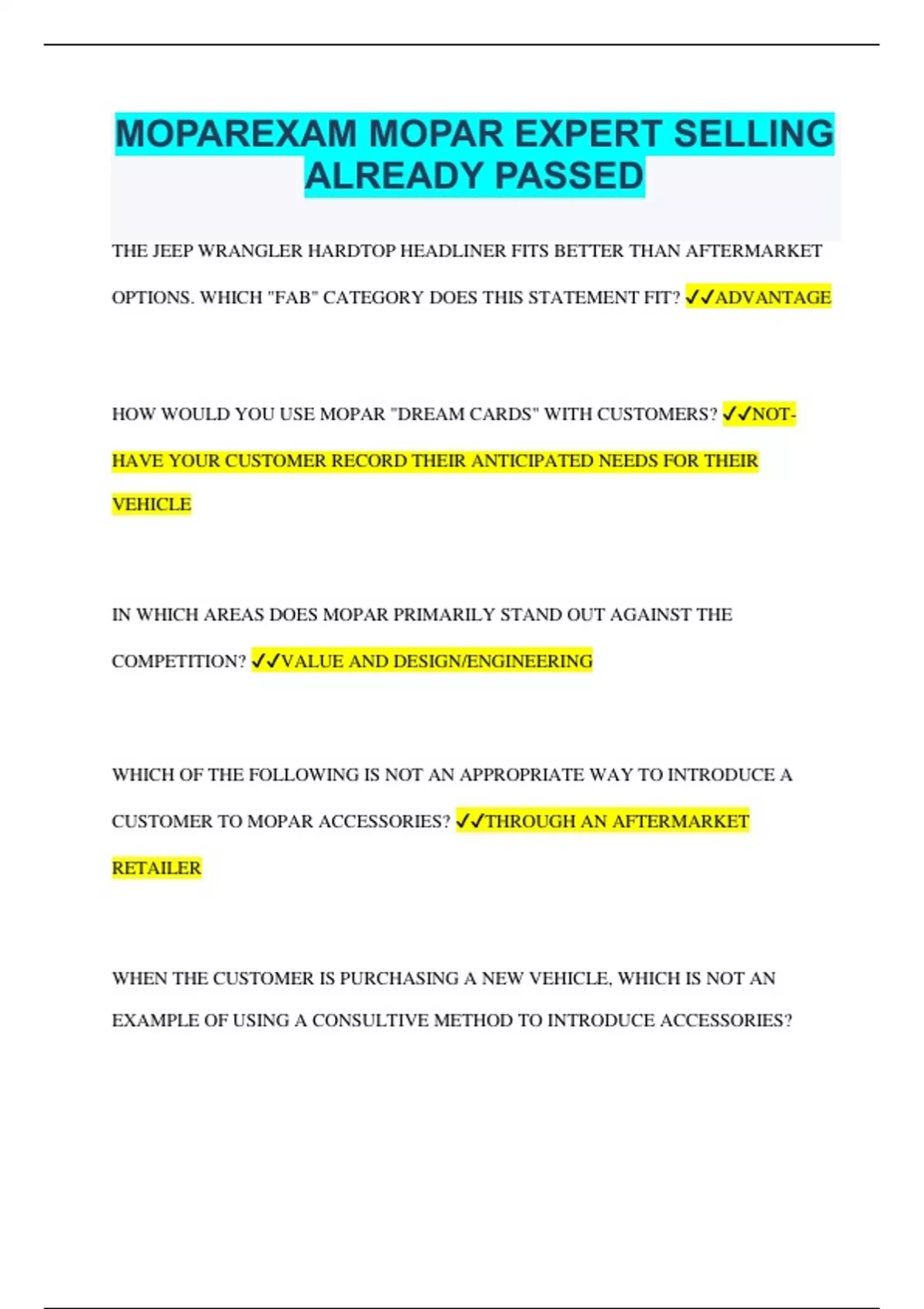 MOPAREXAM MOPAR EXPERT SELLING ALREADY PASSED