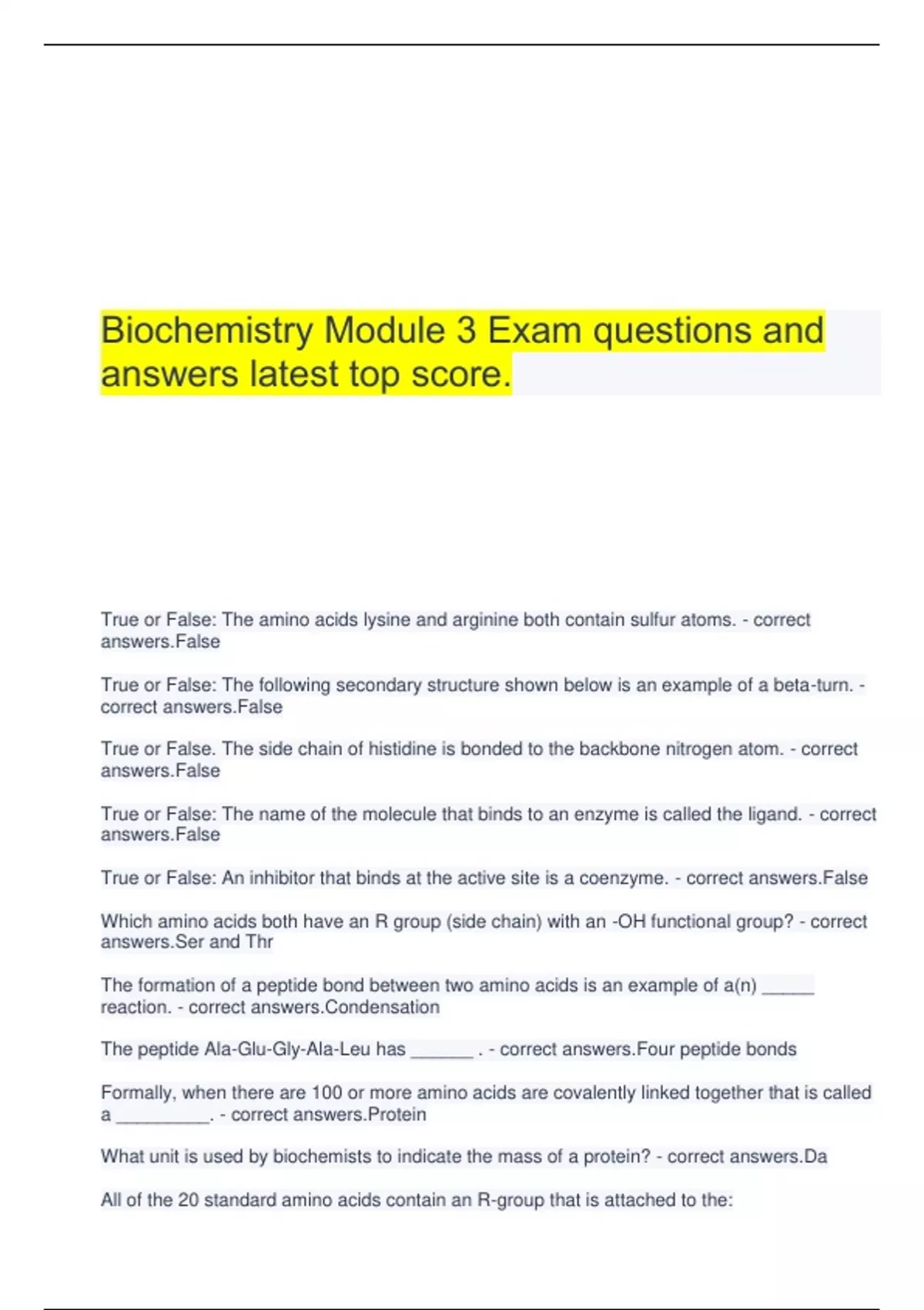 Biochemistry Module 3 Exam questions and answers latest top score.