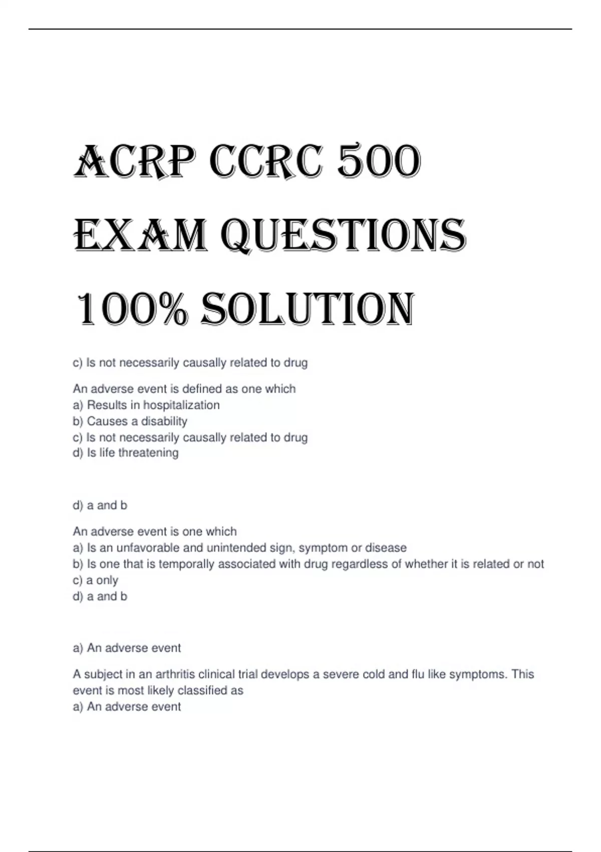 acrp ccrc 500 exam questions 100 solution