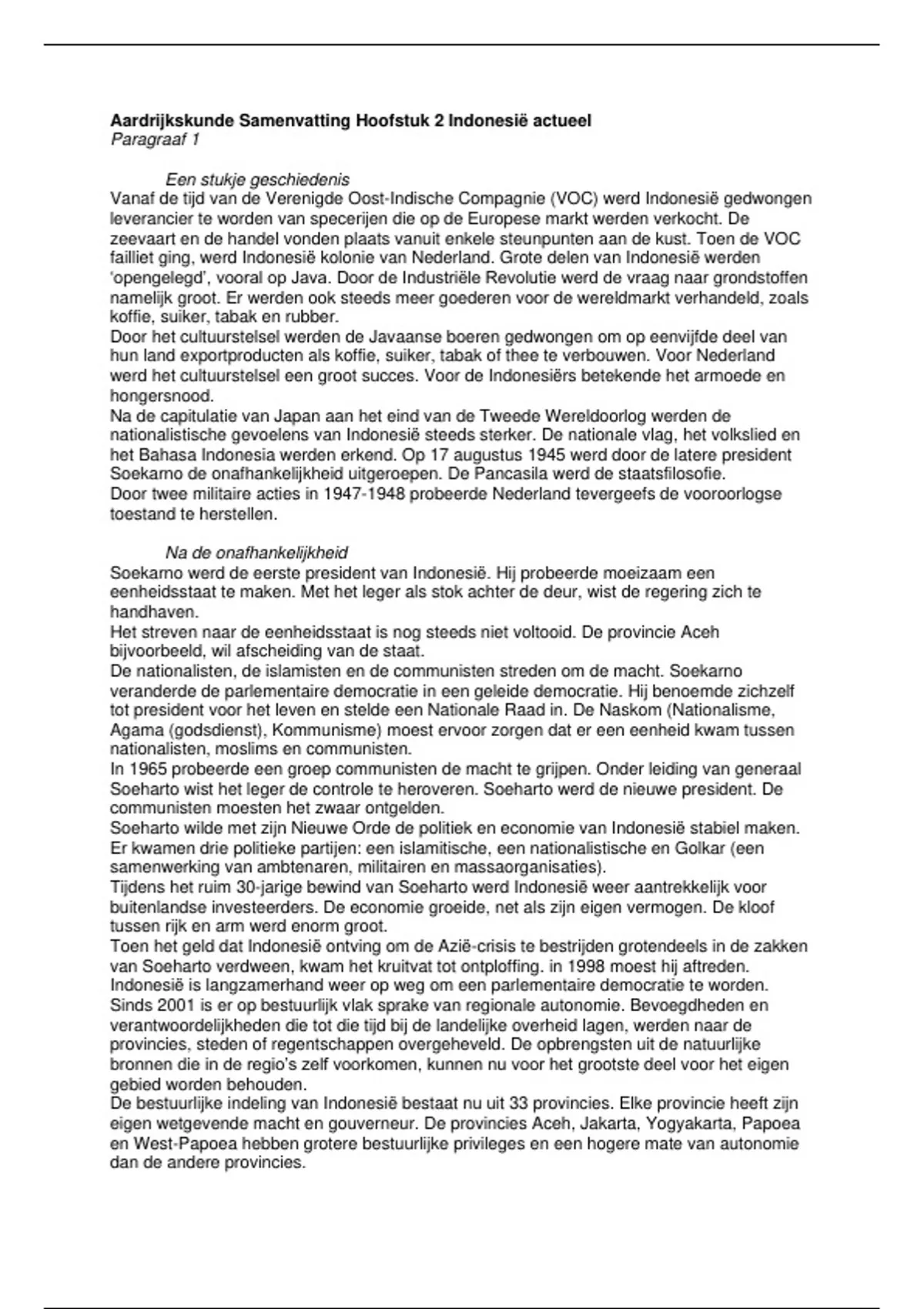 Aardrijkskunde Samenvatting Hoofstuk 2 Indonesië actueel